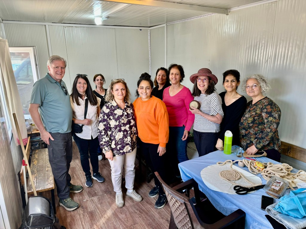 We took the Thayns to see one of the container camps our church provided. We were greeted by grateful, humble people who thanked us repeatedly with such sincerity. Of course we visited the handicraft shop the women have organized. It was sweet to recognize some of these women and to feel such a connection despite the language barrier. Spirits speak heart to heart.