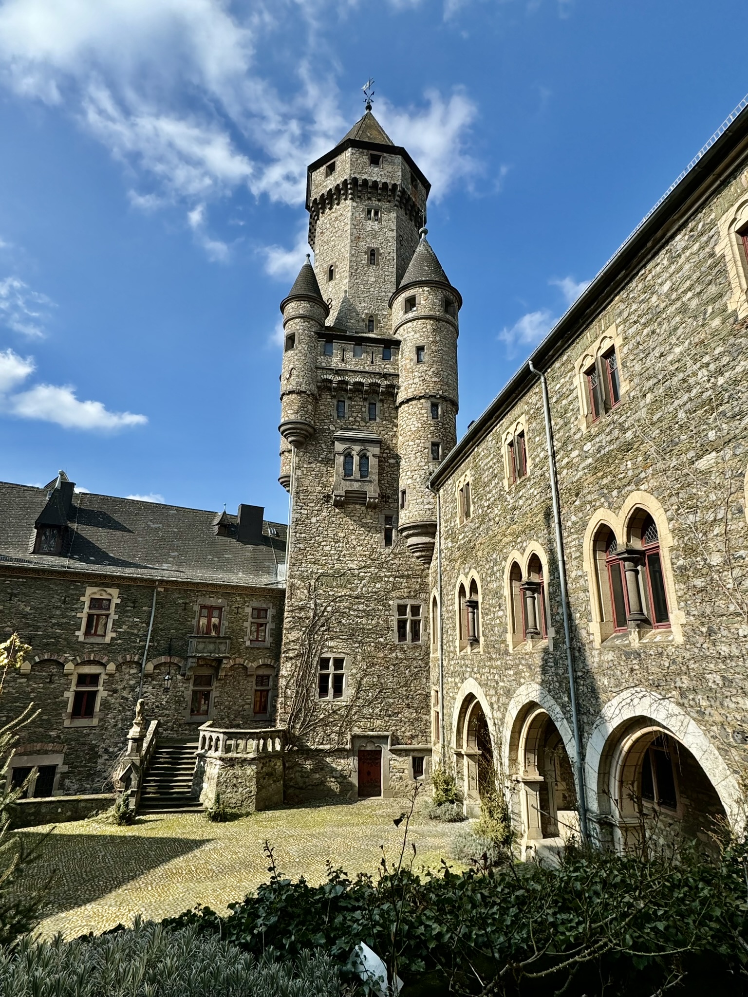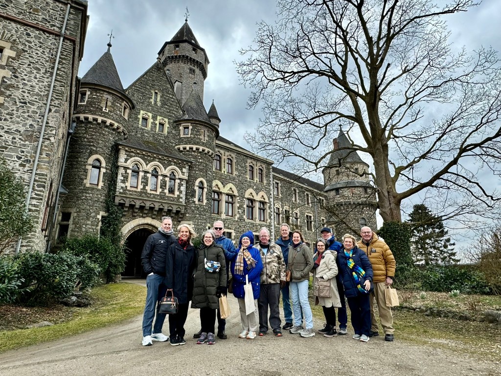 We arrived back in Germany late Friday night, just in time for a Saturday field trip to Braunfels. Towering on the crest of a rock, Castle Braunfels has been in the hands of noble lineage for 800 years. This stronghold overlooks the spa town of Braunfels. This name was familiar to us from when we lived in Texas. New Braunfels, Texas was settled by a member of the family who lived in this castle. We always enjoyed visiting this German town when we lived in Corpus Christi. This castle was begun in the 13th century. Its present towered silhouette is mainly a product of the 1880’s. We saw 14 of the 204 rooms. The in-residence family occupies 70 rooms today. Unfortunately, no pictures were allowed inside.