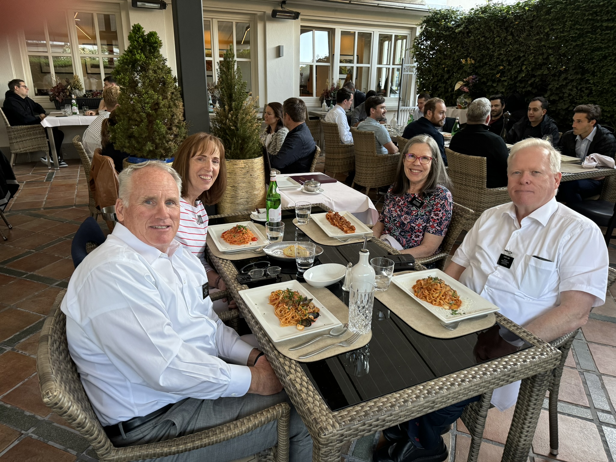 Our infield humanitarian couple for Germany, Austria & Switzerland were in Frankfurt for three days this week. We always look forward to spending time with Elder and Sister Muehlmann. They had Sunday dinner with us at our apartment, came to FHE & choir practice with us on Monday and went out to dinner with us on Tuesday after they ‘pickled’ us at pickleball.