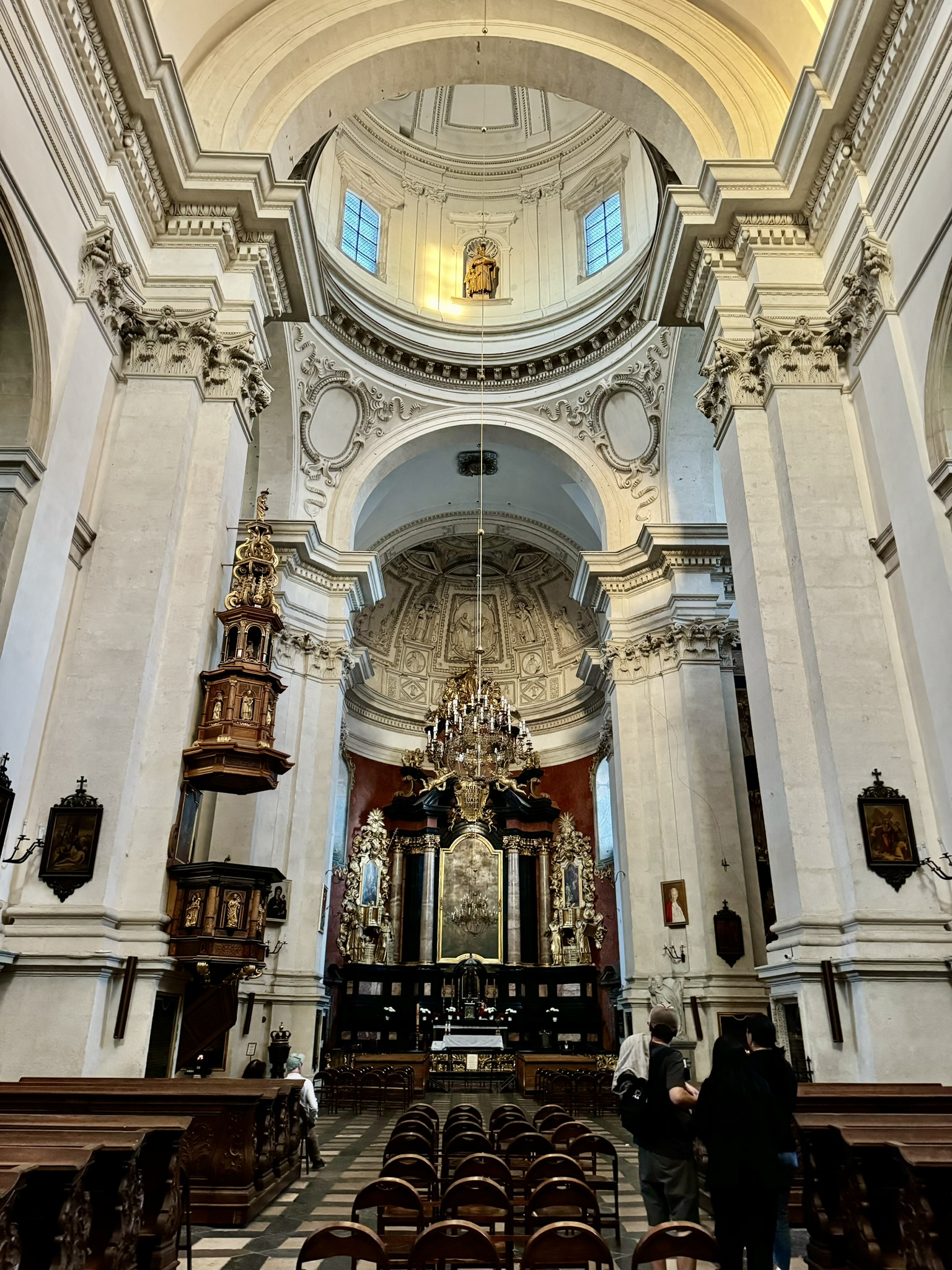The Church of Saints Peter & Paul was the first Baroque church in Poland. All 12 apostles are found on the fence at the entrance. We enjoyed a lovely concert here.