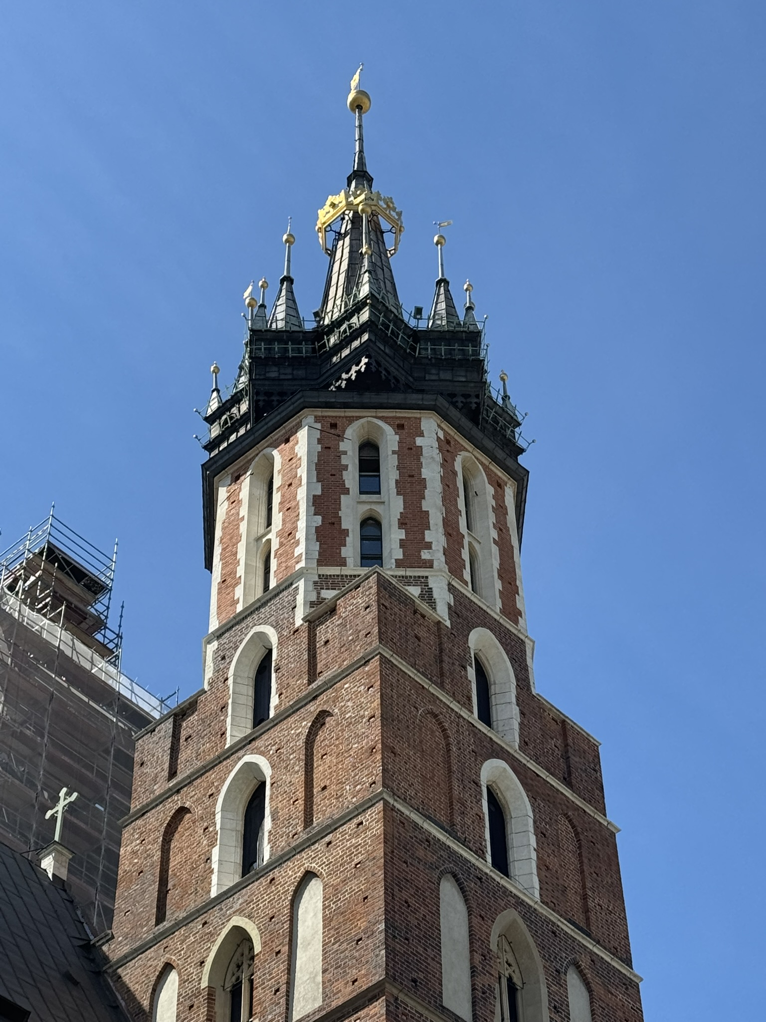 It is famous for the daily trumpet call from the taller tower that was used as the city watchtower for centuries. Today, the trumpet call is played by firemen every hour, four times in succession in each of the four cardinal directions. The trumpet always breaks as though unfinished to commemorate the legendary event of the trumpeter who tried to alarm the city of approaching invaders, but was hit by an arrow and did not finish the call.