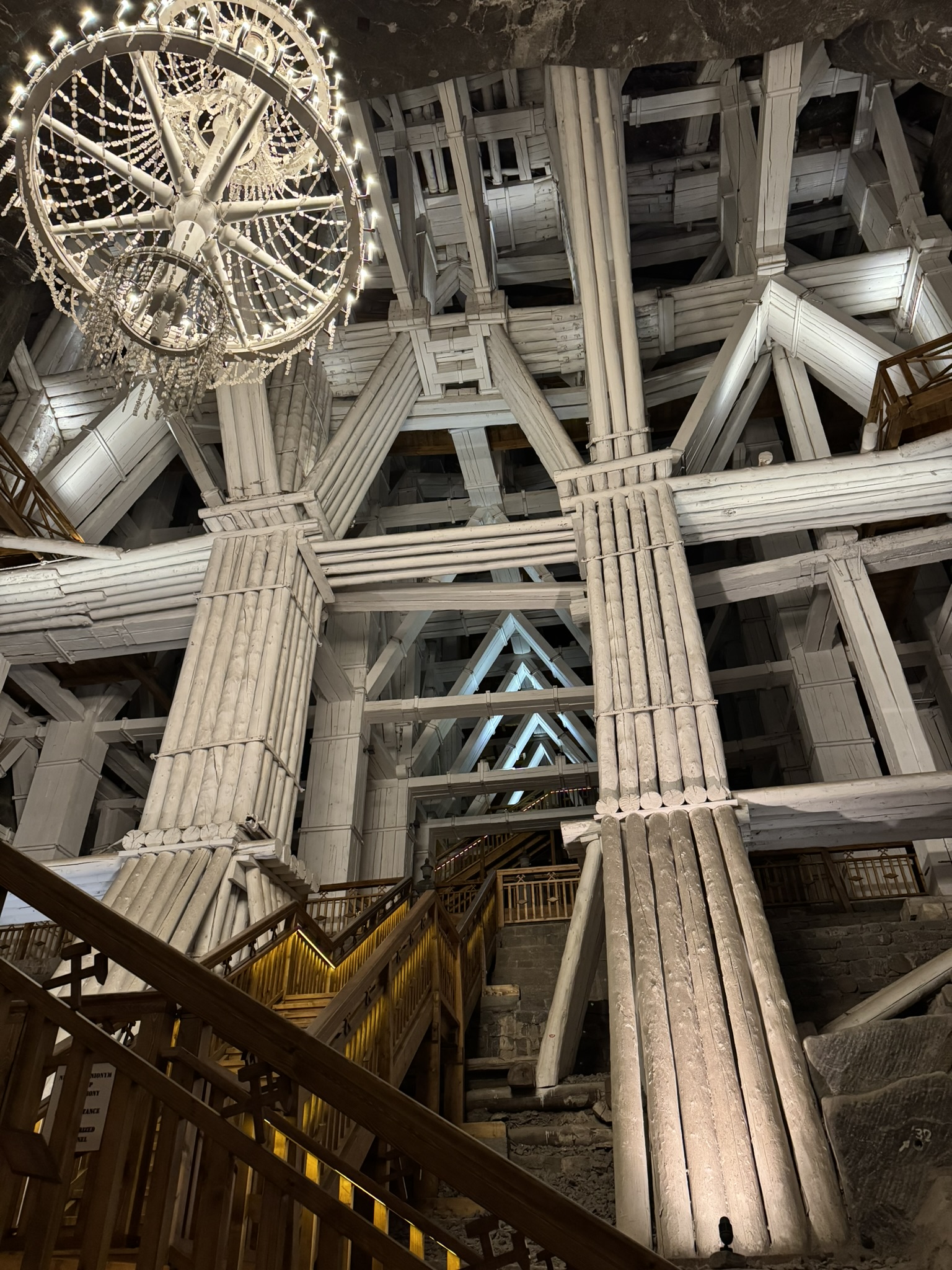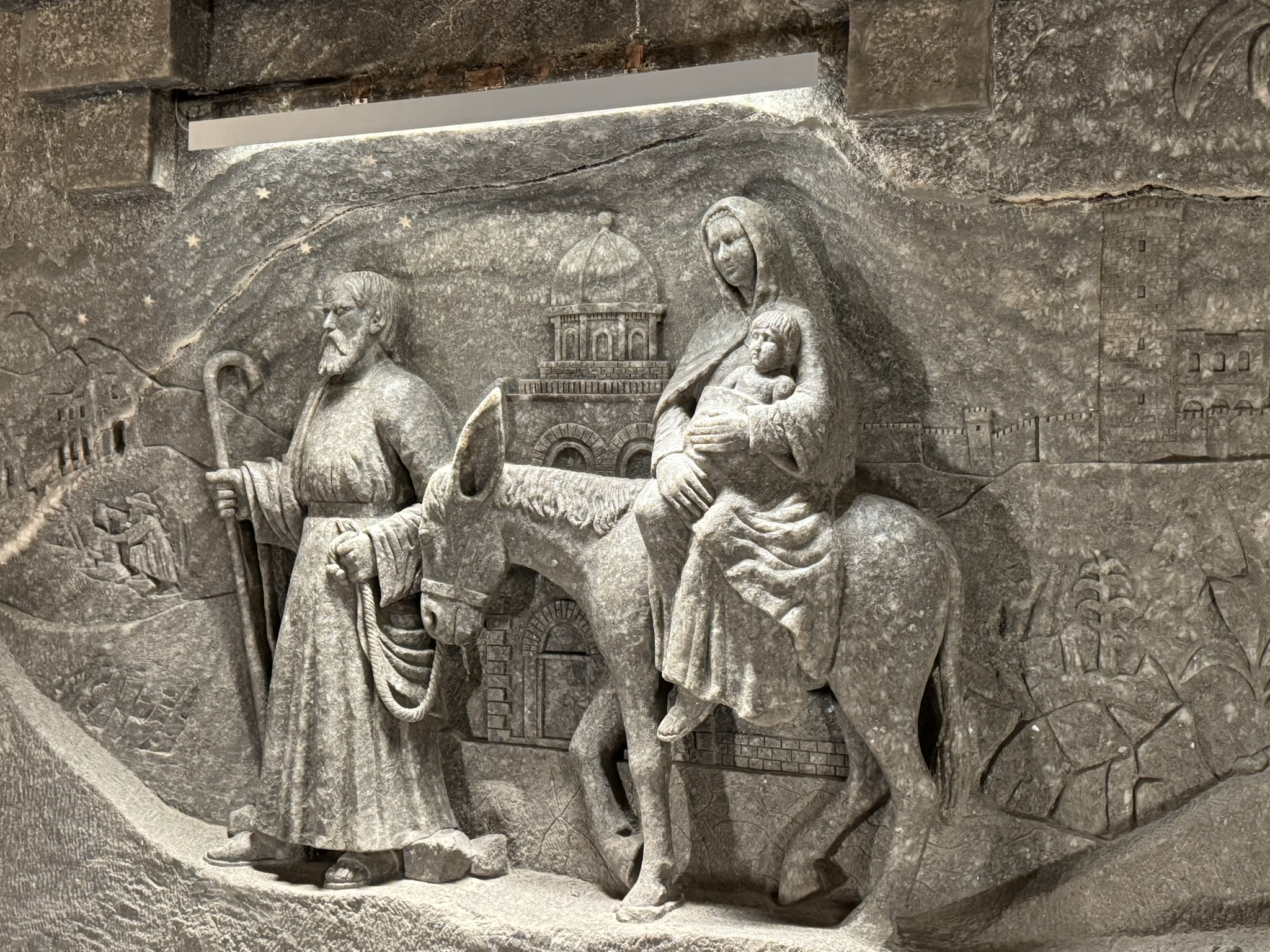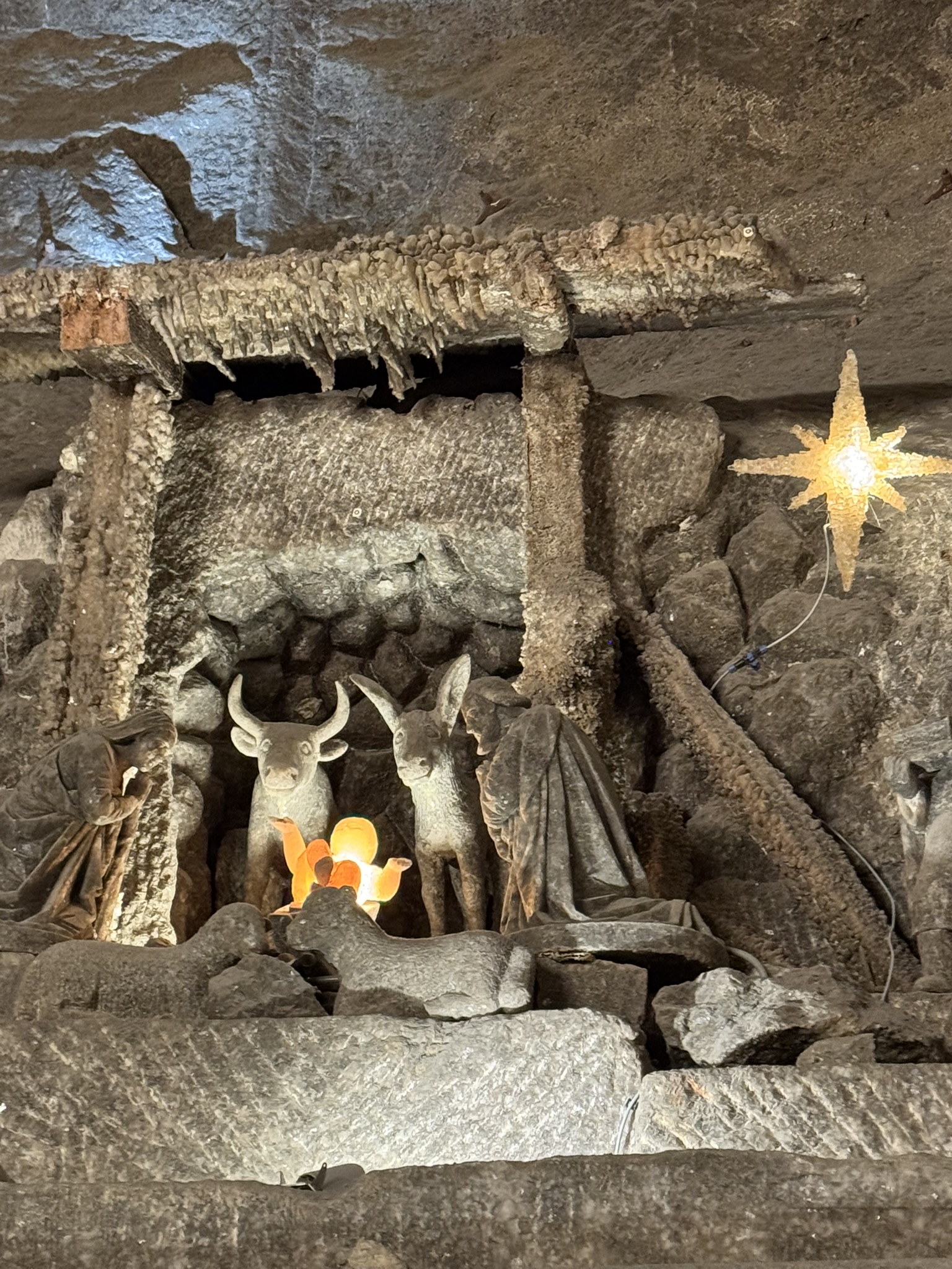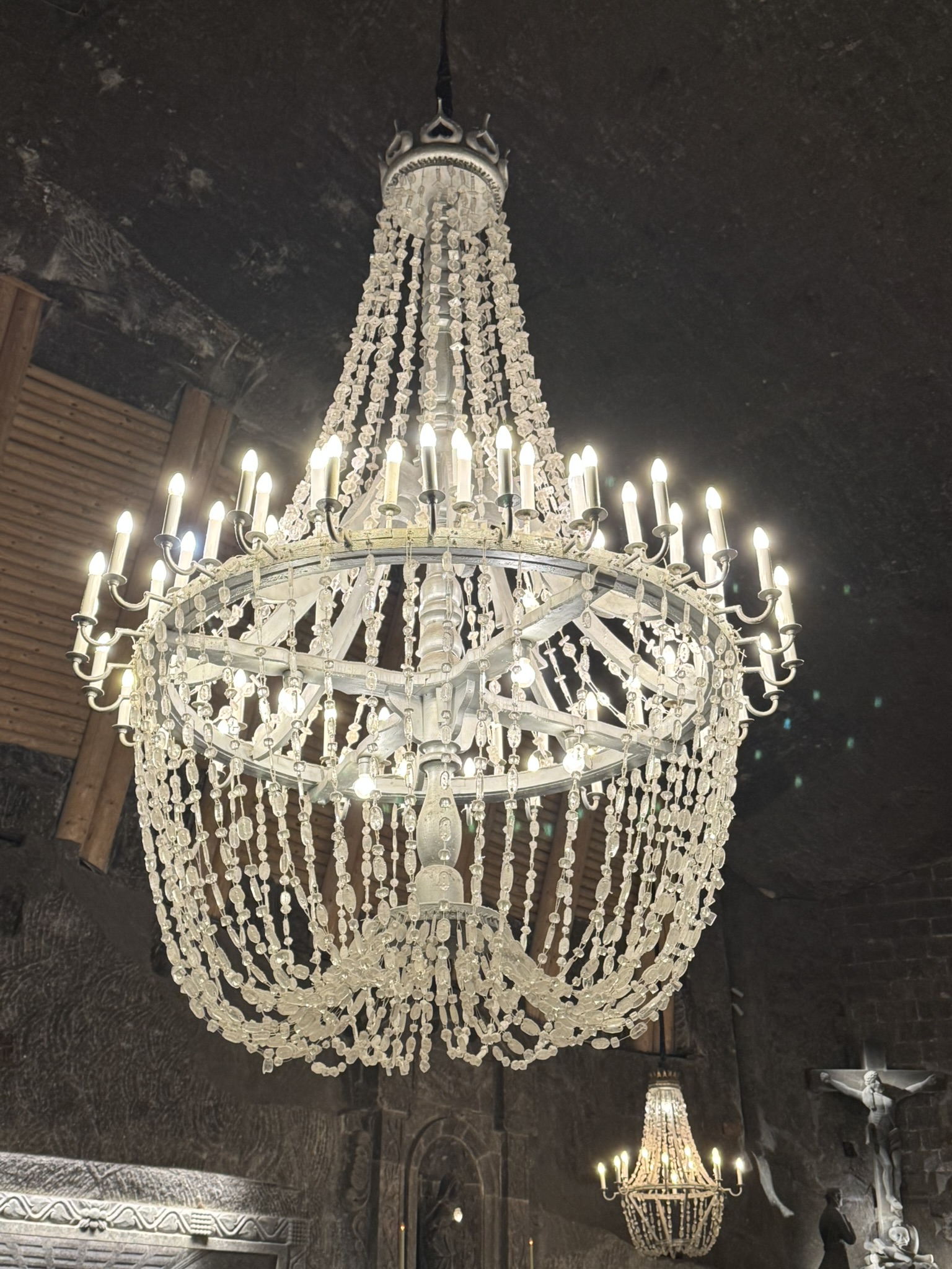 As we descended 378 stairs to visit this 700-year-old mine, we saw a few of the 40 underground chapels that are carved from salt. Salty subterranean lakes have a higher salinity level than the Dead Sea. Everything underground is made of salt including the chandeliers and floors. Table salt was produced here from the 13th century continuously until 1996.