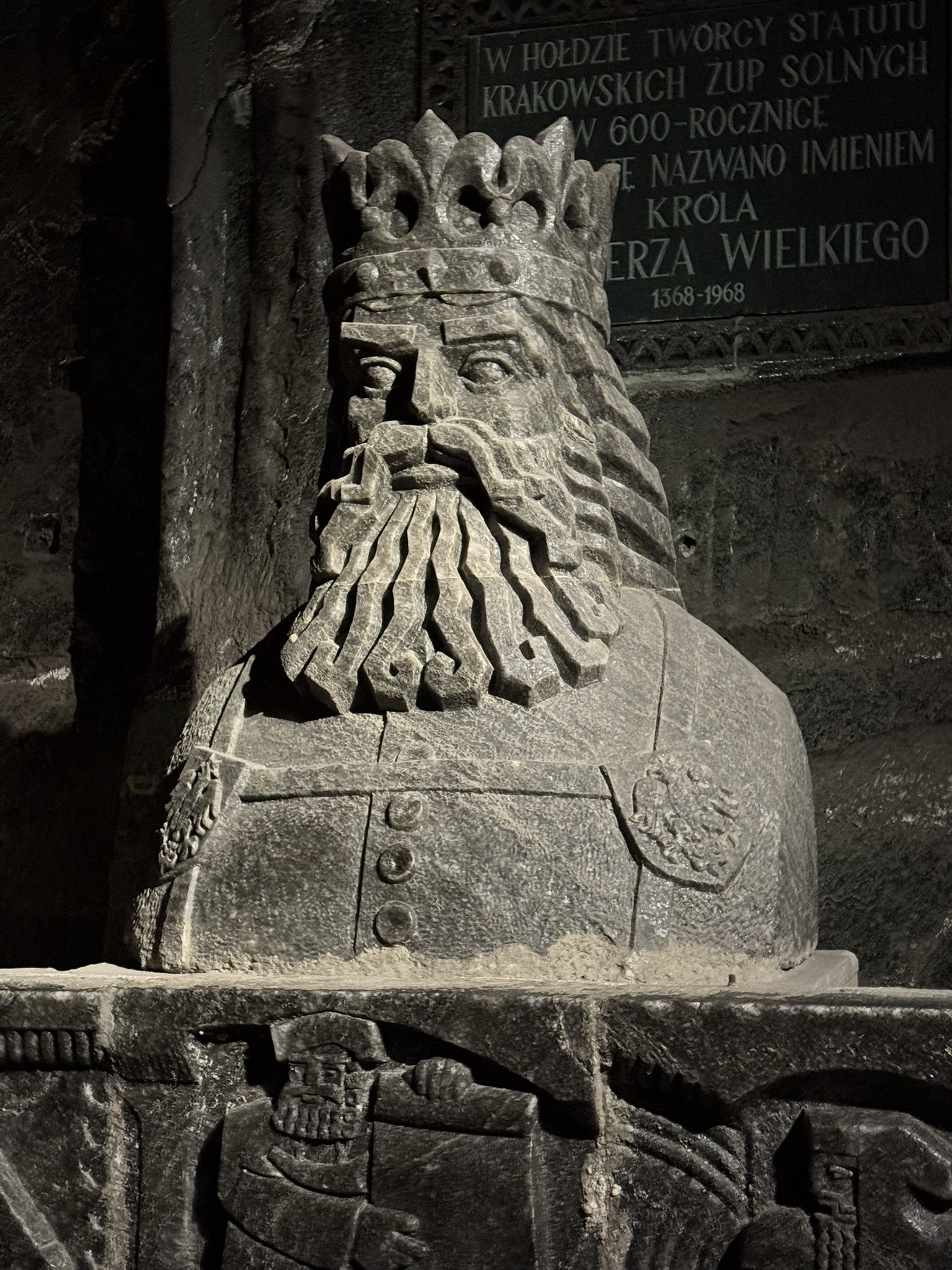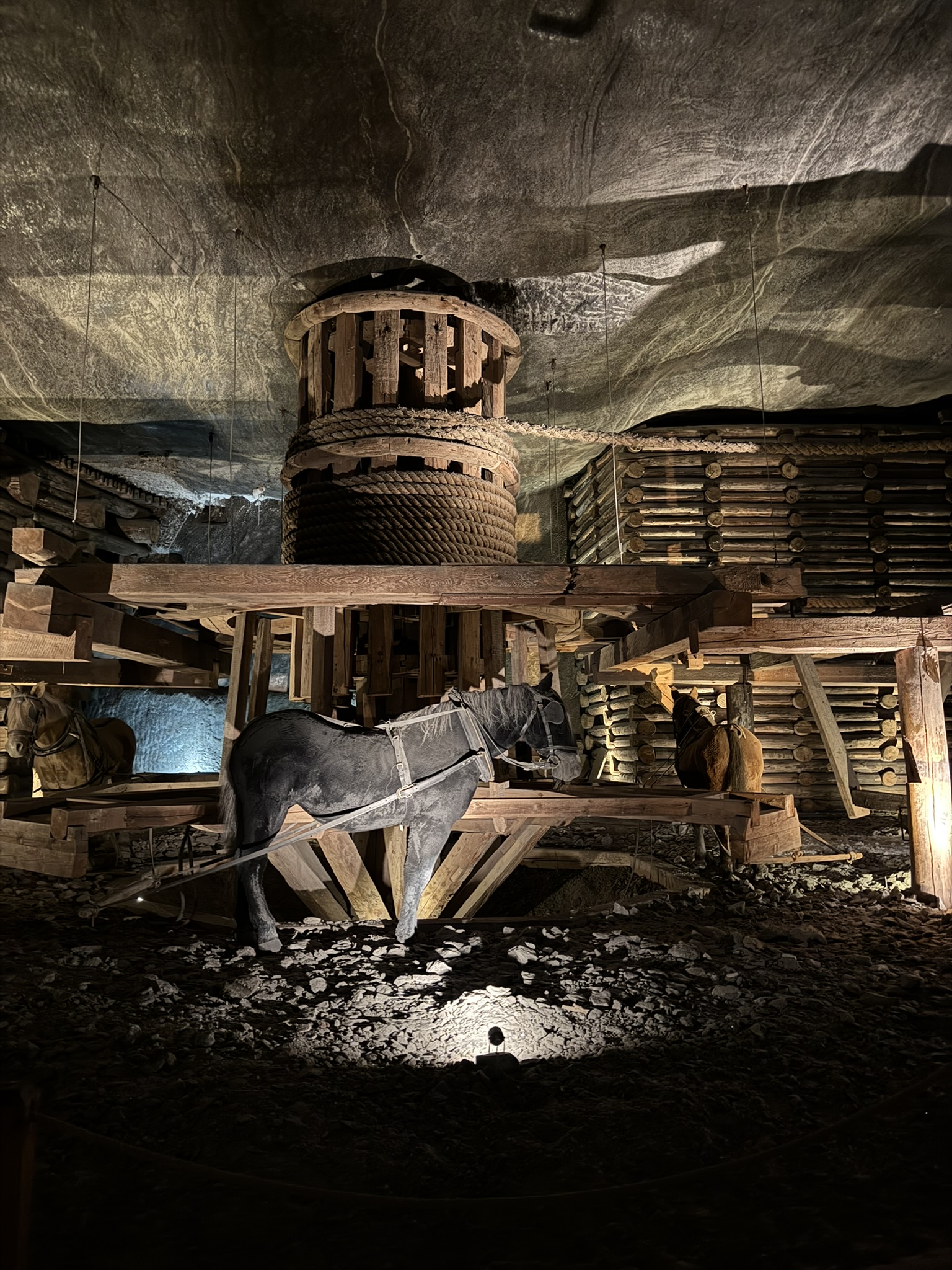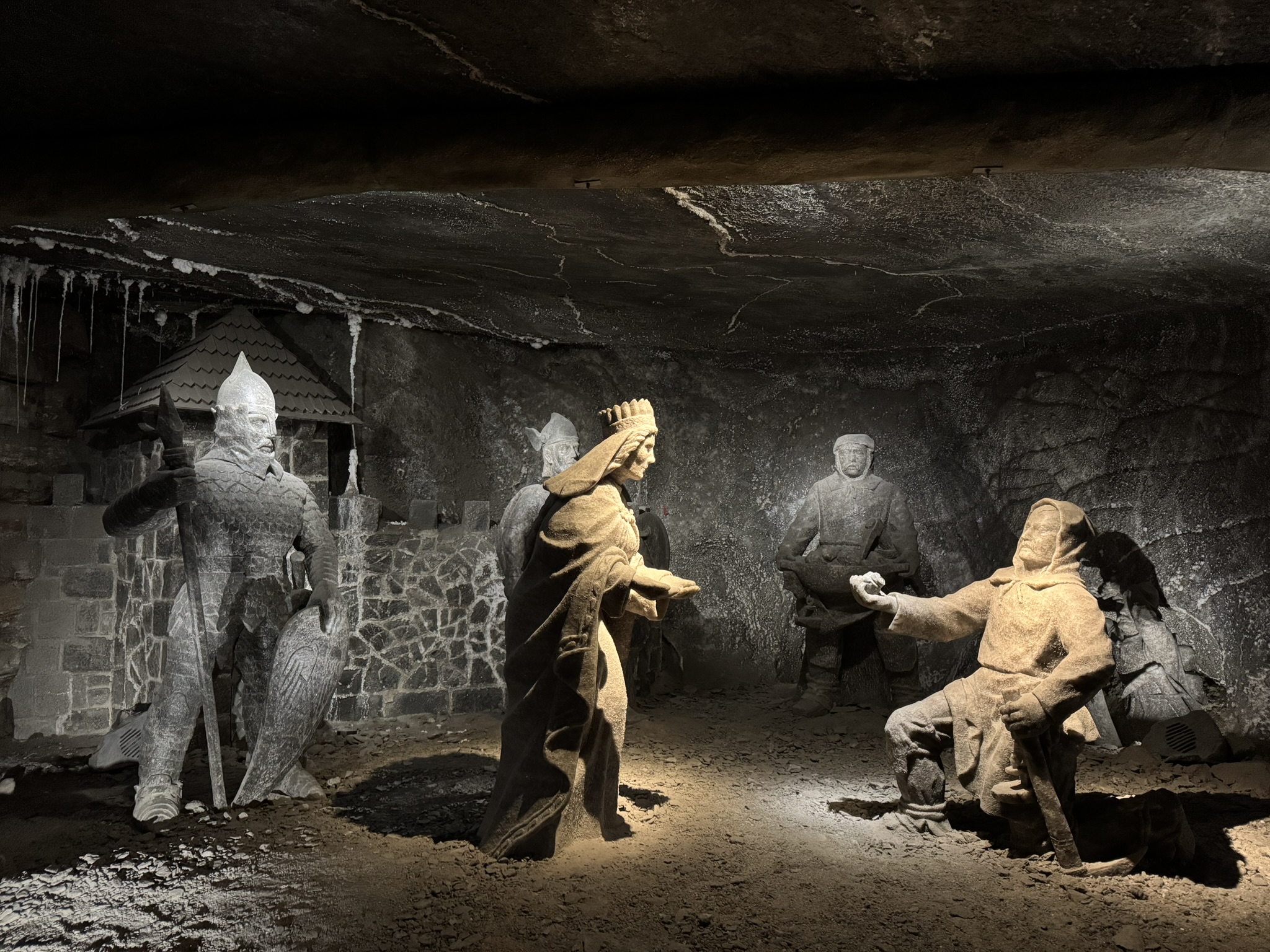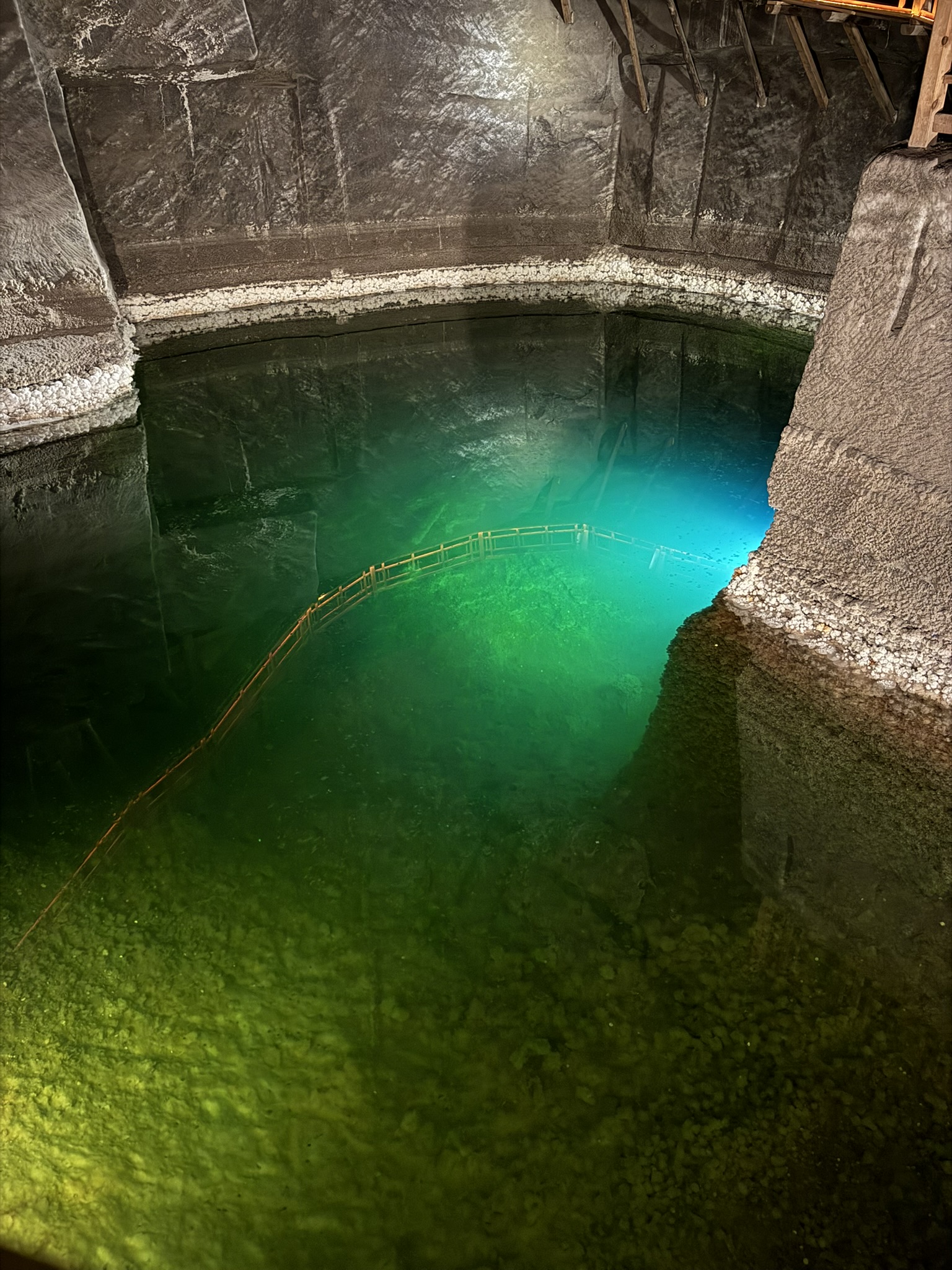As we descended 378 stairs to visit this 700-year-old mine, we saw a few of the 40 underground chapels that are carved from salt. Salty subterranean lakes have a higher salinity level than the Dead Sea. Everything underground is made of salt including the chandeliers and floors. Table salt was produced here from the 13th century continuously until 1996.