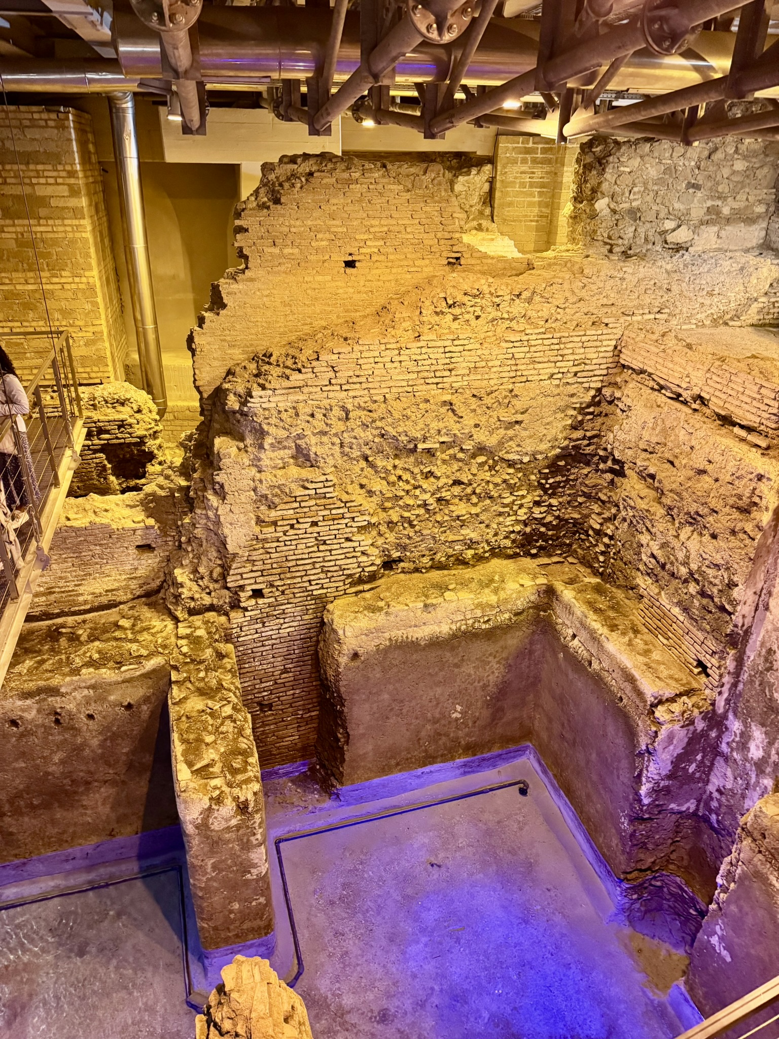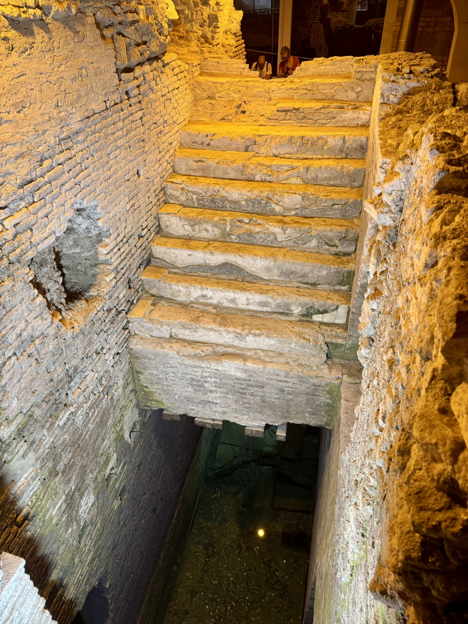 We took a tour of Vicus Caprarius. Below the Trevi Fountain we visited the ancient houses of wealthy Romans and the source of water that still feeds Trevi today. This 19 B.C. aqueduct is one of the 11 aqueducts that brought water into ancient Rome. It was originally built to bring water to King Agrippa’s baths. It is not the oldest or the longest but the only aqueduct that is still functioning today. We saw Roman homes on the bottom level with a medieval neighborhood on top. Both time periods of ancient cities lay below street level today