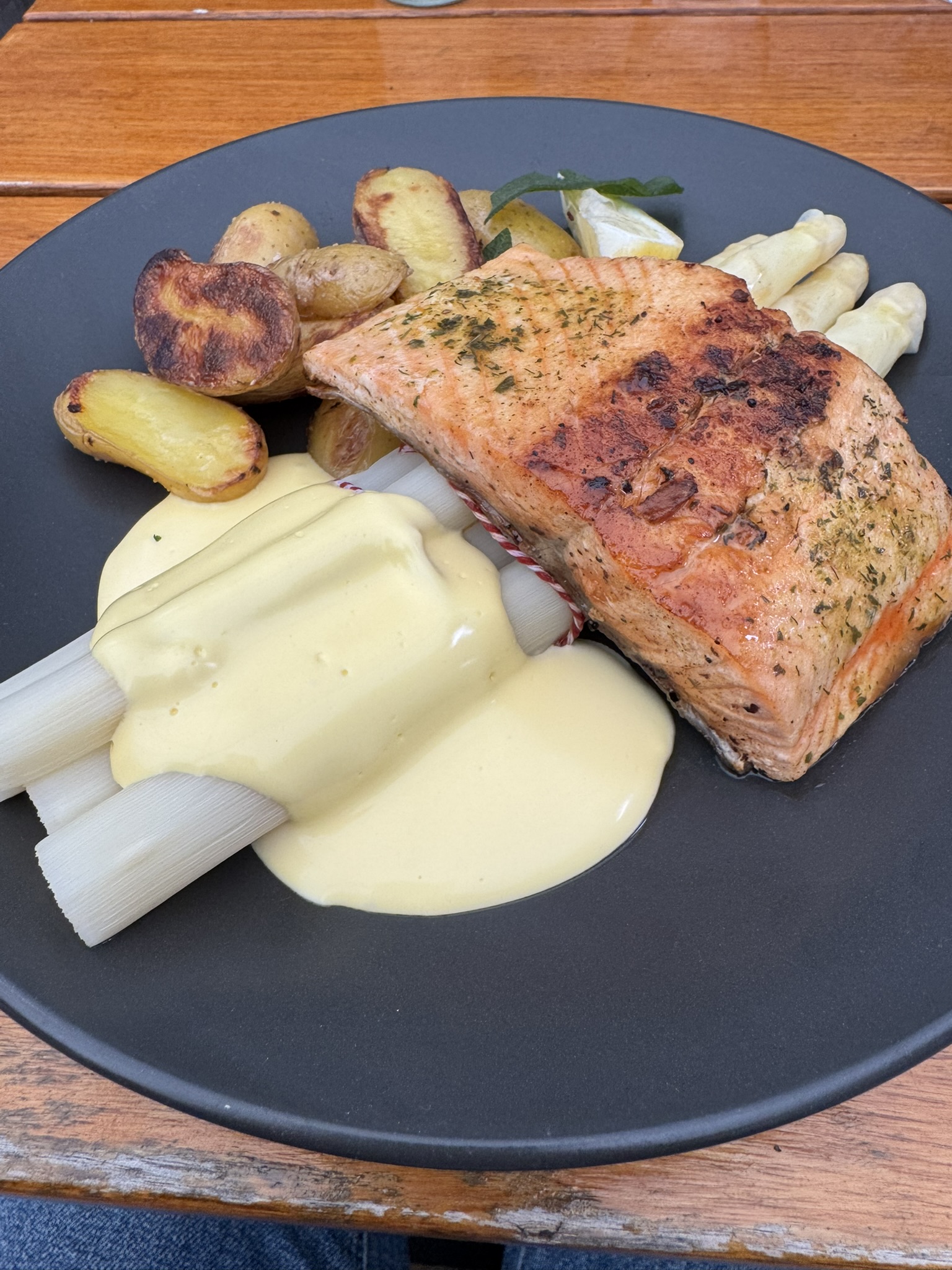 We enjoyed dinner in Rüdesheim with the Southwicks. Fresh spargel (asparagus) is on every menu right now. It was a lovely day, and the weather cooperated perfectly. It did not start raining until we were ready to head home.