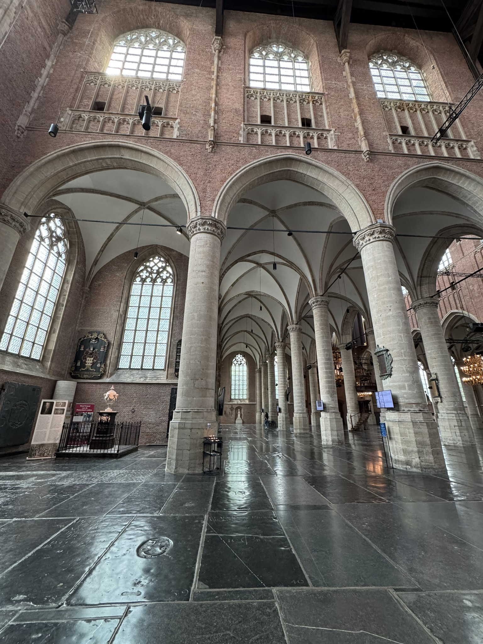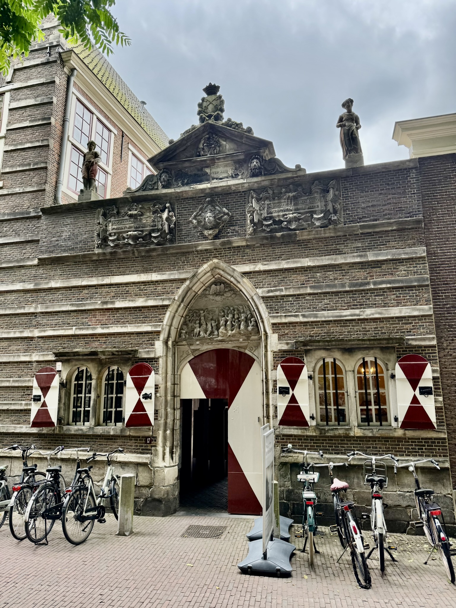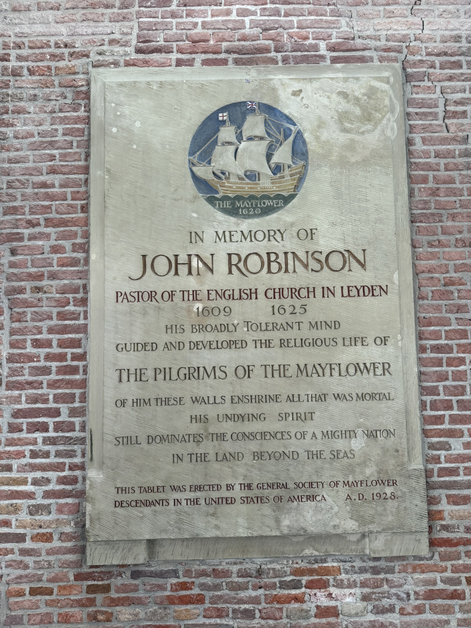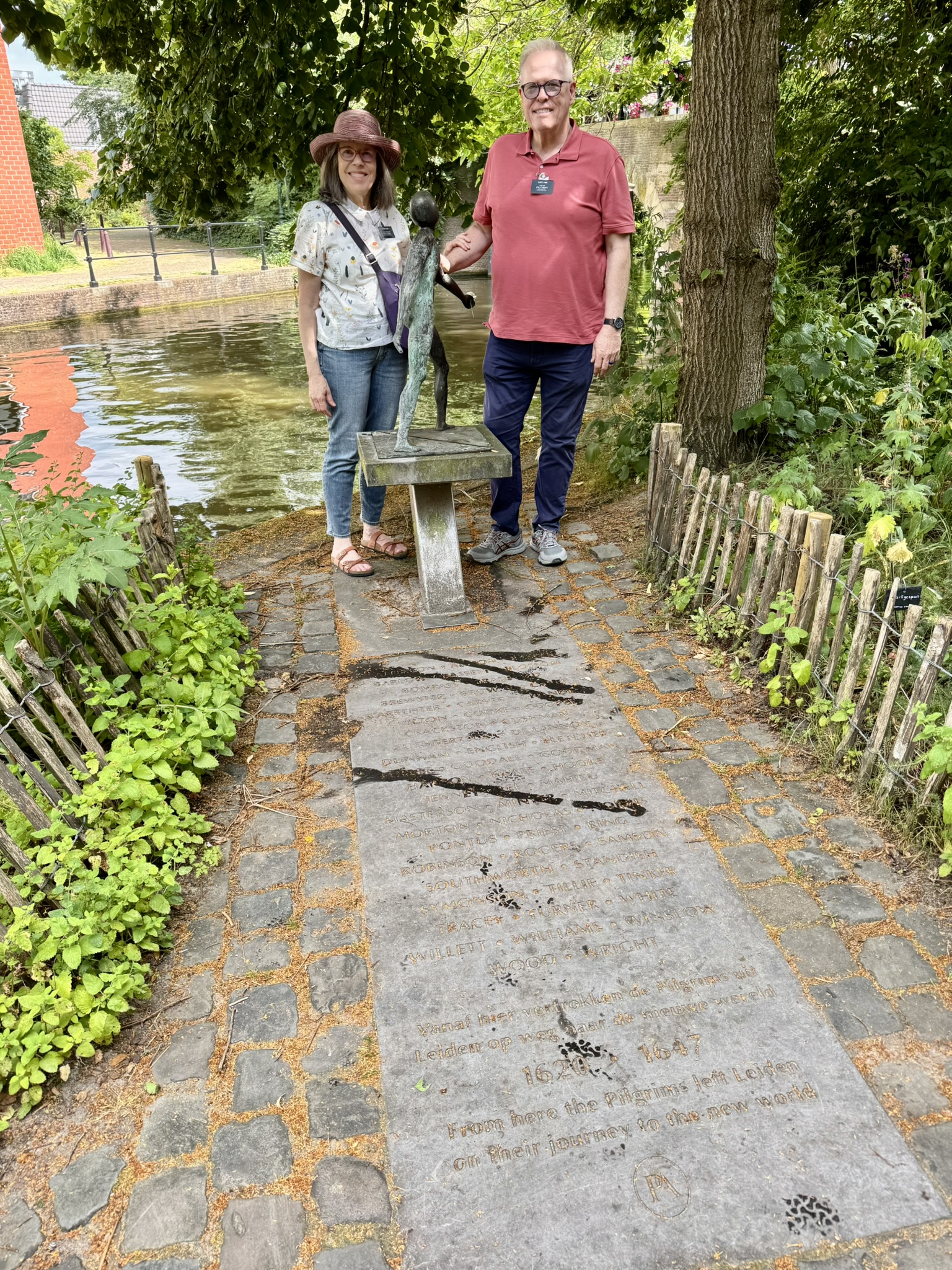 When we finally arrived, we enjoyed a Pilgrim Fathers Walking Tour. In 1620, 102 assorted Pilgrims and adventurers set sail for New England on the Mayflower. About half of the Pilgrims had been sheltering in Leiden since they left England in1609. We visited places that would have existed while they lived here in the early 1600’s. Since we both have ancestors that sailed on the Mayflower we wanted to walk in their footsteps.