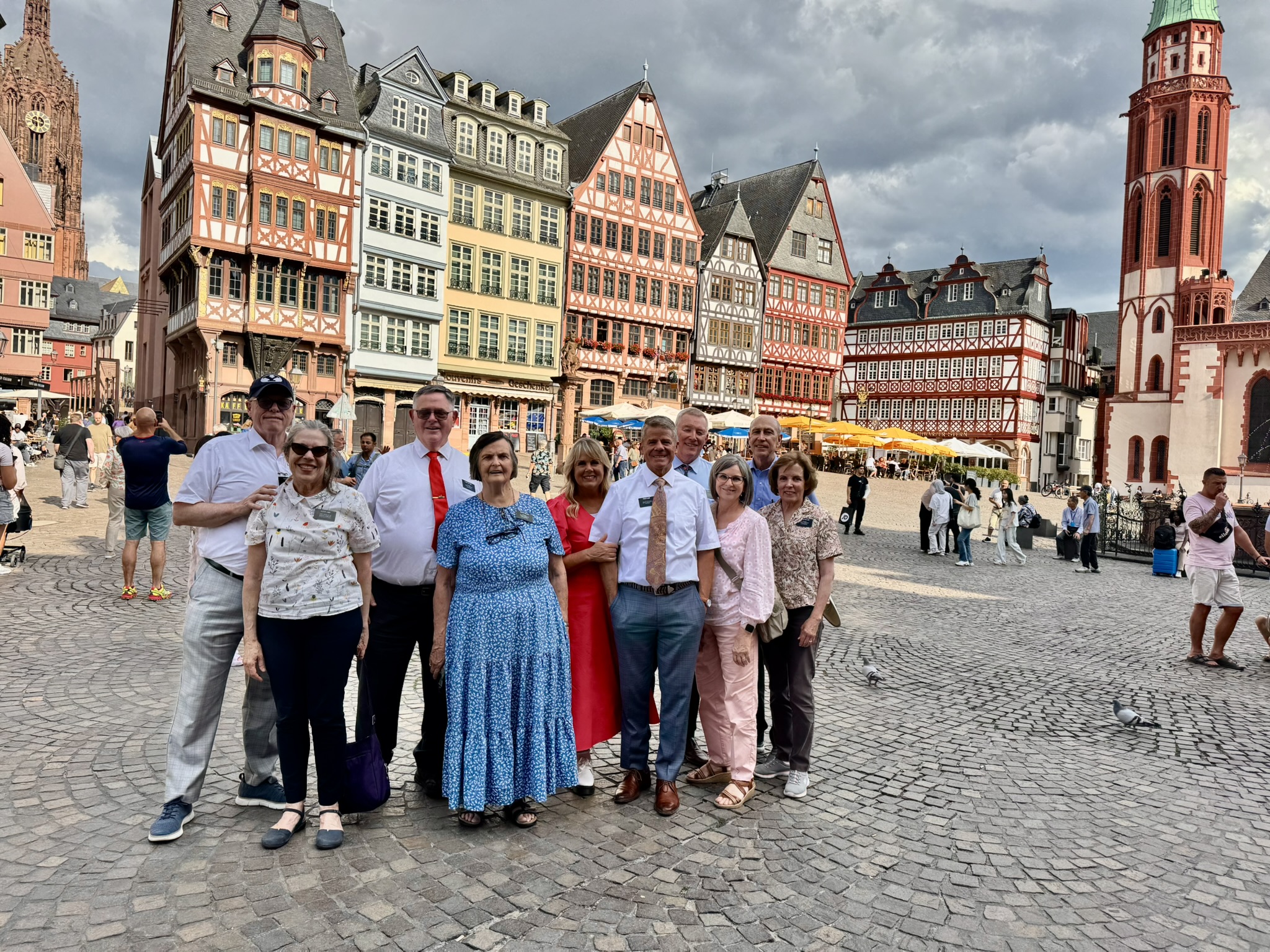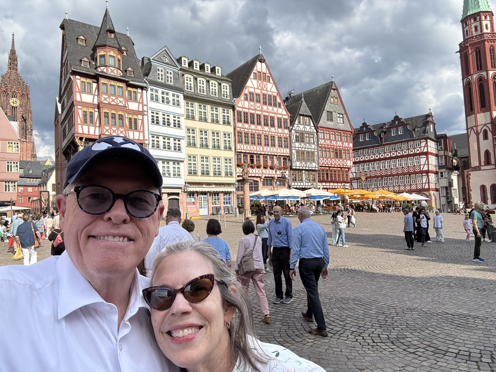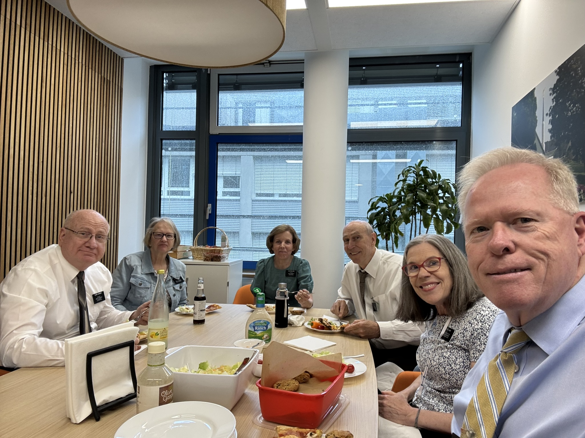 We had two of our German field couples in the Frankfurt office for humanitarian training this week. Elder and Sister Waldal will be serving in Berlin & Hamburg. Elder and Sister Burke serve in the Frankfurt mission which goes as far south as Stuttgart. The Burkes arrived last summer when we did, but up until now have been focusing on Self-Reliance. Now they will join us in humanitarian work. Both couples are from Oregon. After hours of training in the office, three straight days, we had evening excursions to the temple & downtown Frankfurt. We love these couples that we work so closely with. The Nelsons had their Hungarian couple in town for training, Elder and Sister Finch. Southwick’s are our office support couple. The humanitarian office runs so much more smoothly since they arrived in January!