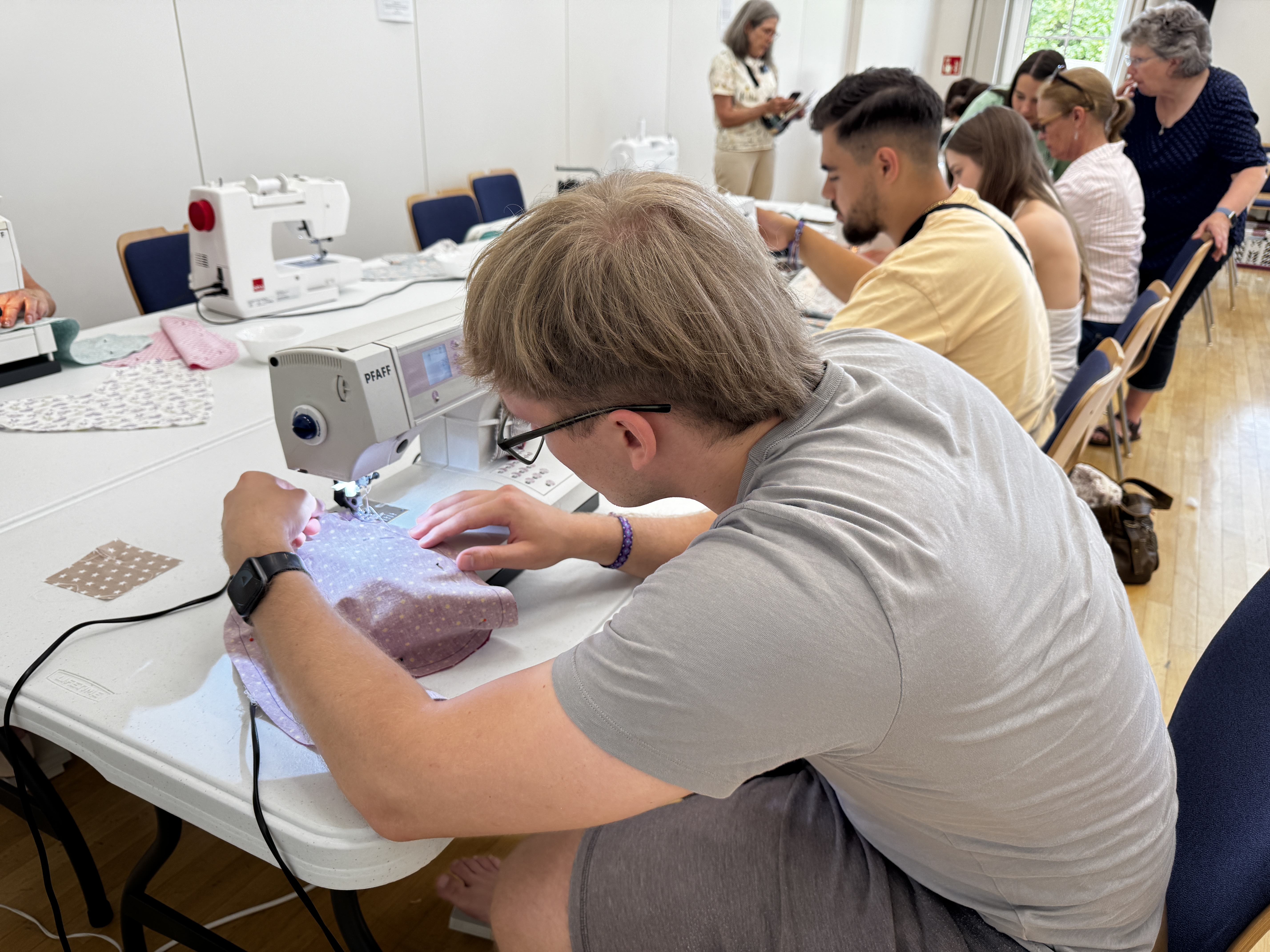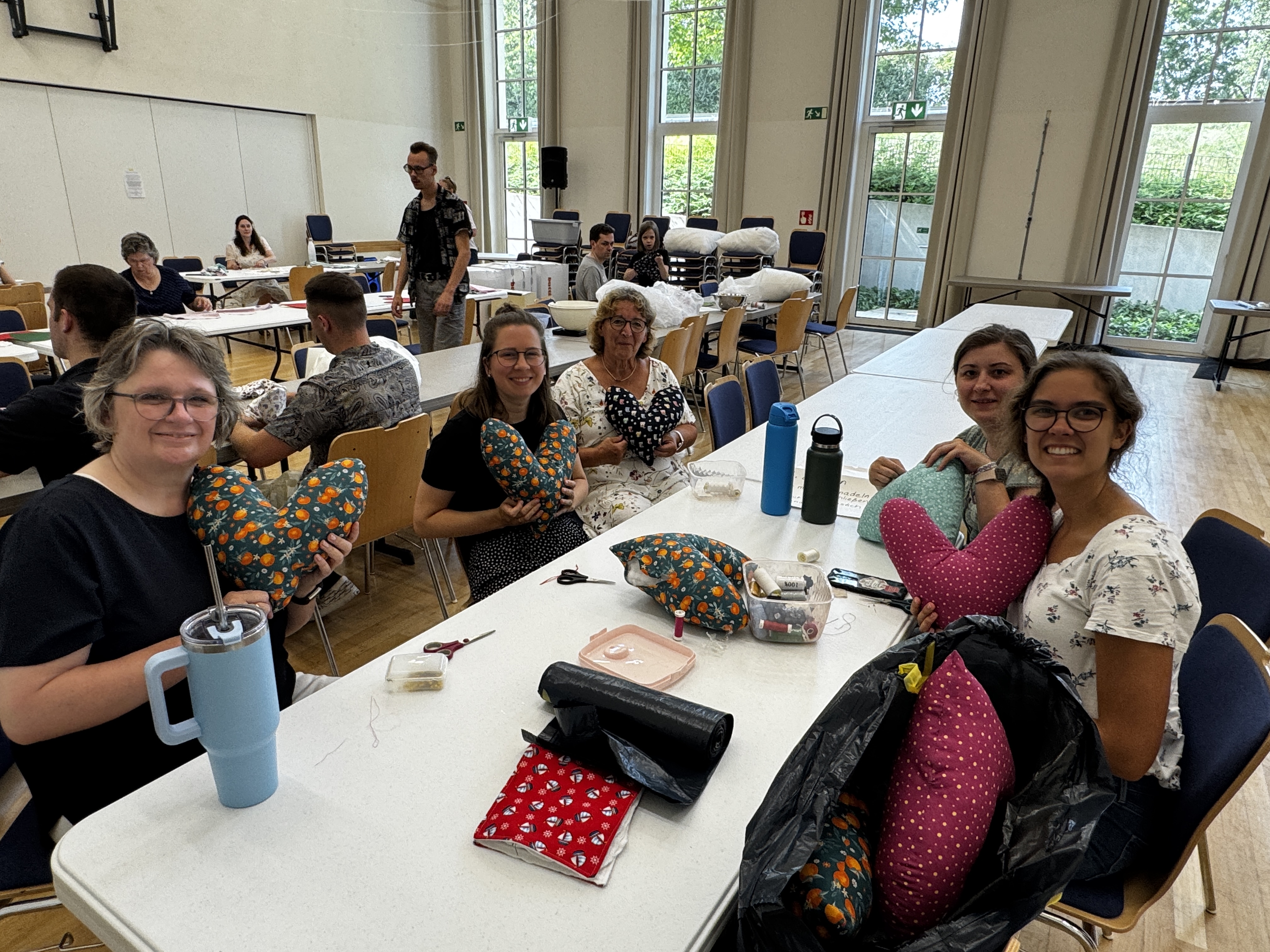 Throughout the world the youth in our church gather for conferences during the summer months. Service is always a component of these conferences. We were able to spend a day with 180 amazing young men and women ages 18-30 who met for a four-day conference just 10 minutes away from our office. They were German speaking youth from Germany, Austria and Switzerland. They participated in several community service projects. We focused on the two they used humanitarian funding for. They sewed 100 heart pillows for breast cancer patients which will be distributed through a local hospital.