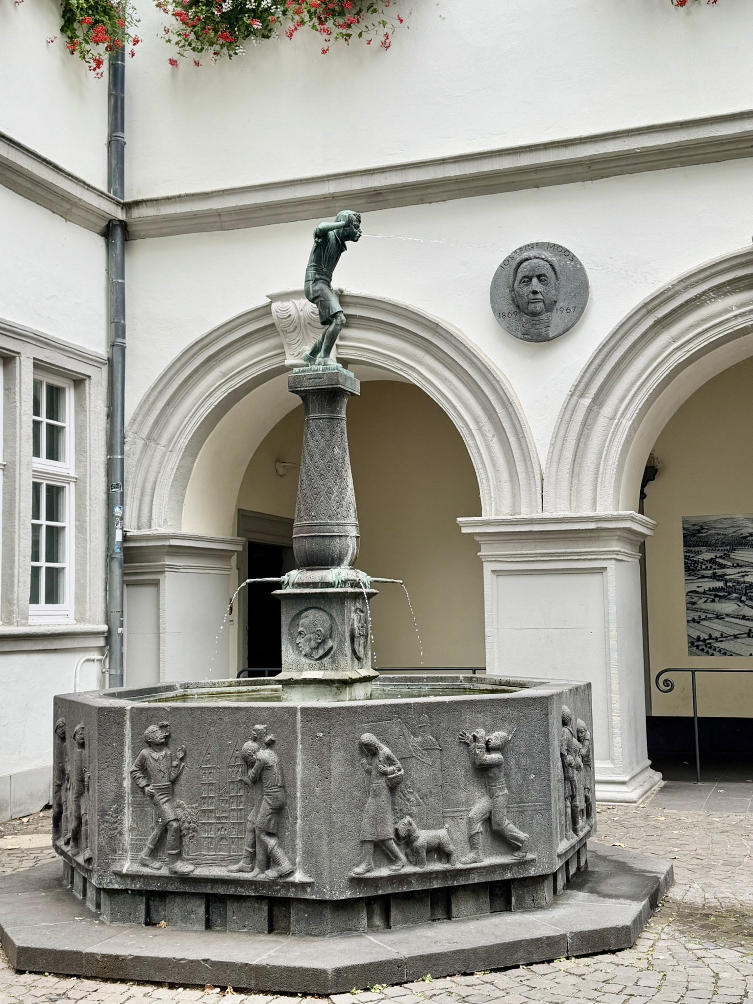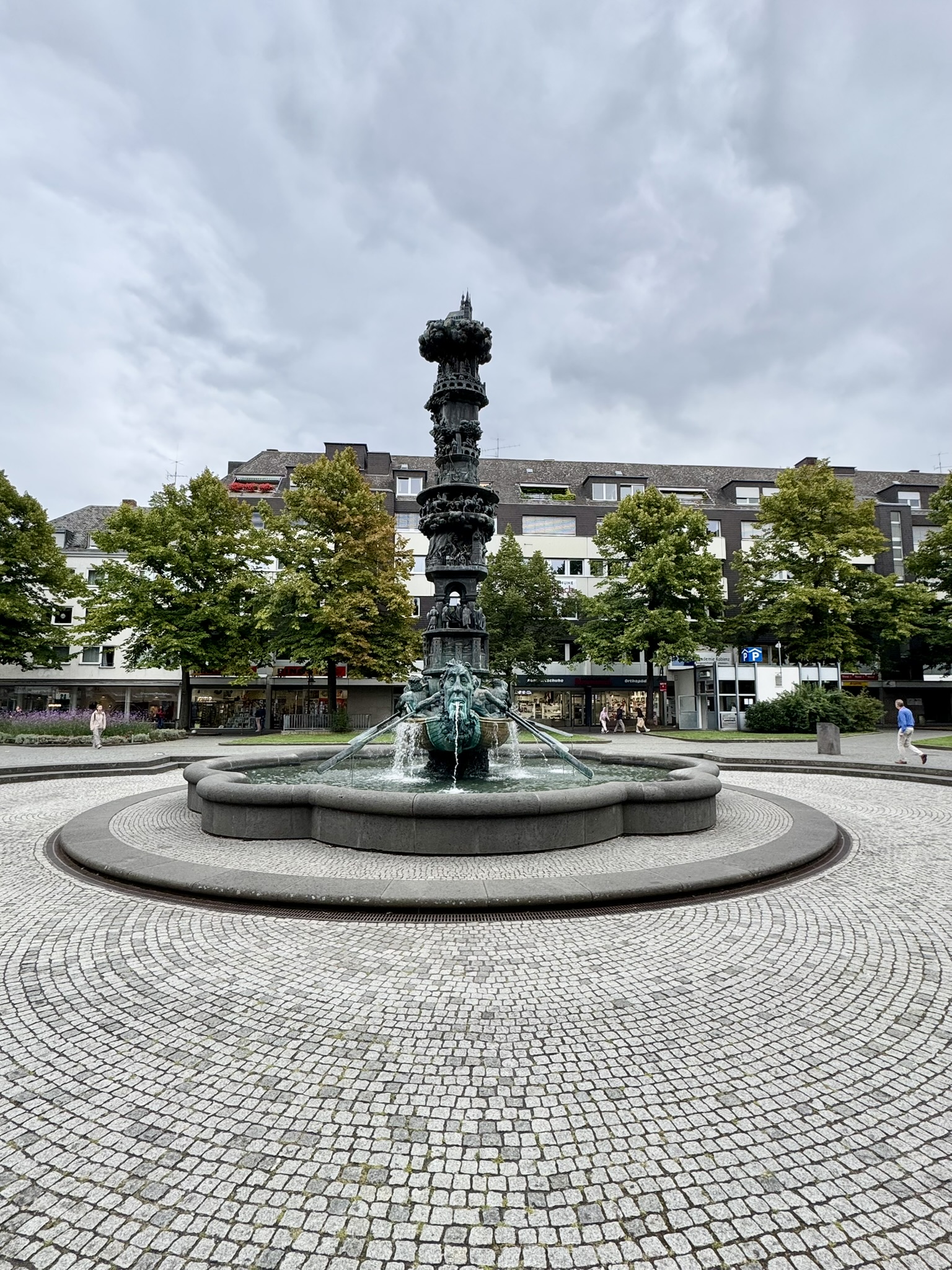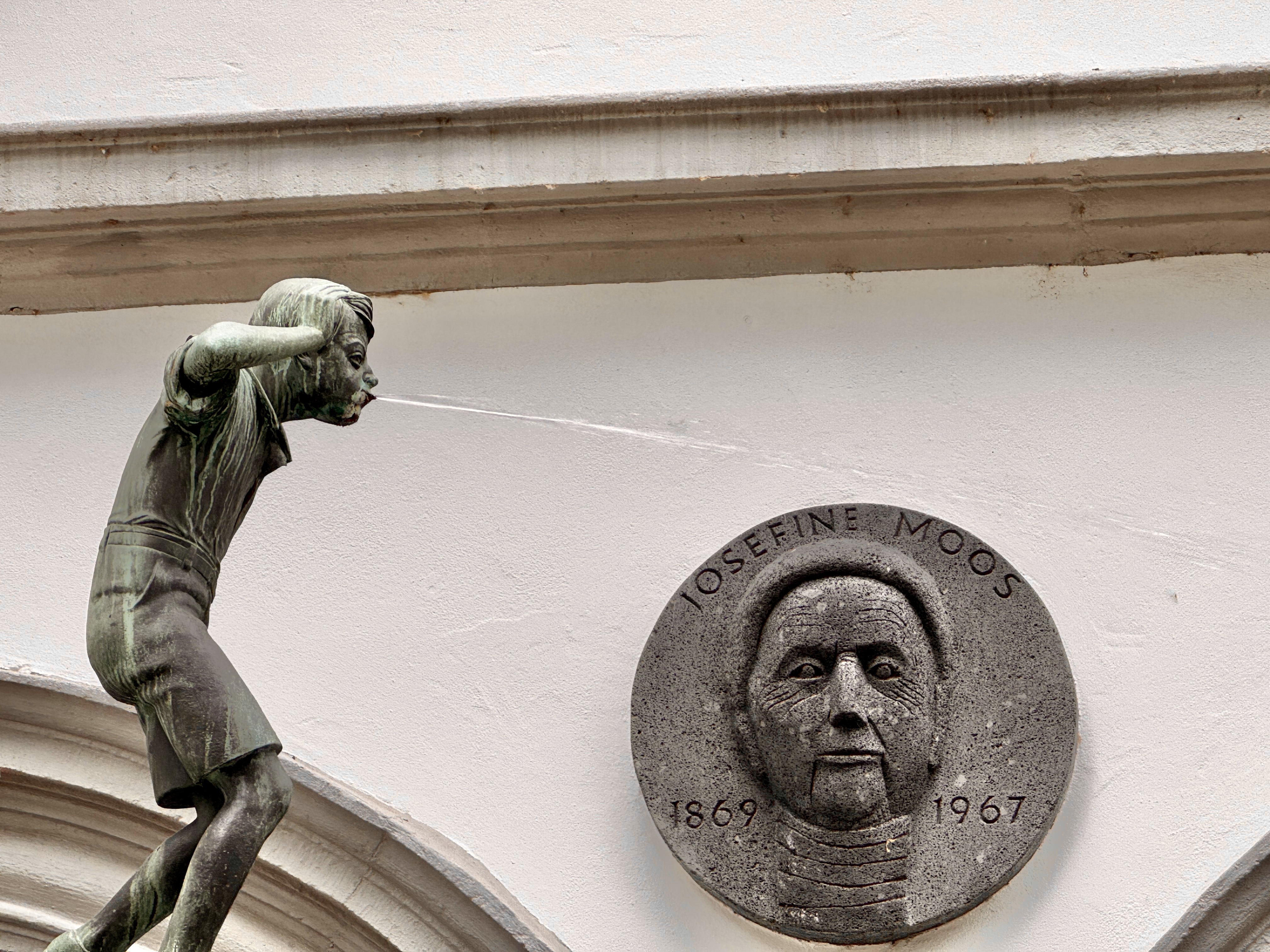 Two interesting fountains with a common theme of water spewing from a mouth.