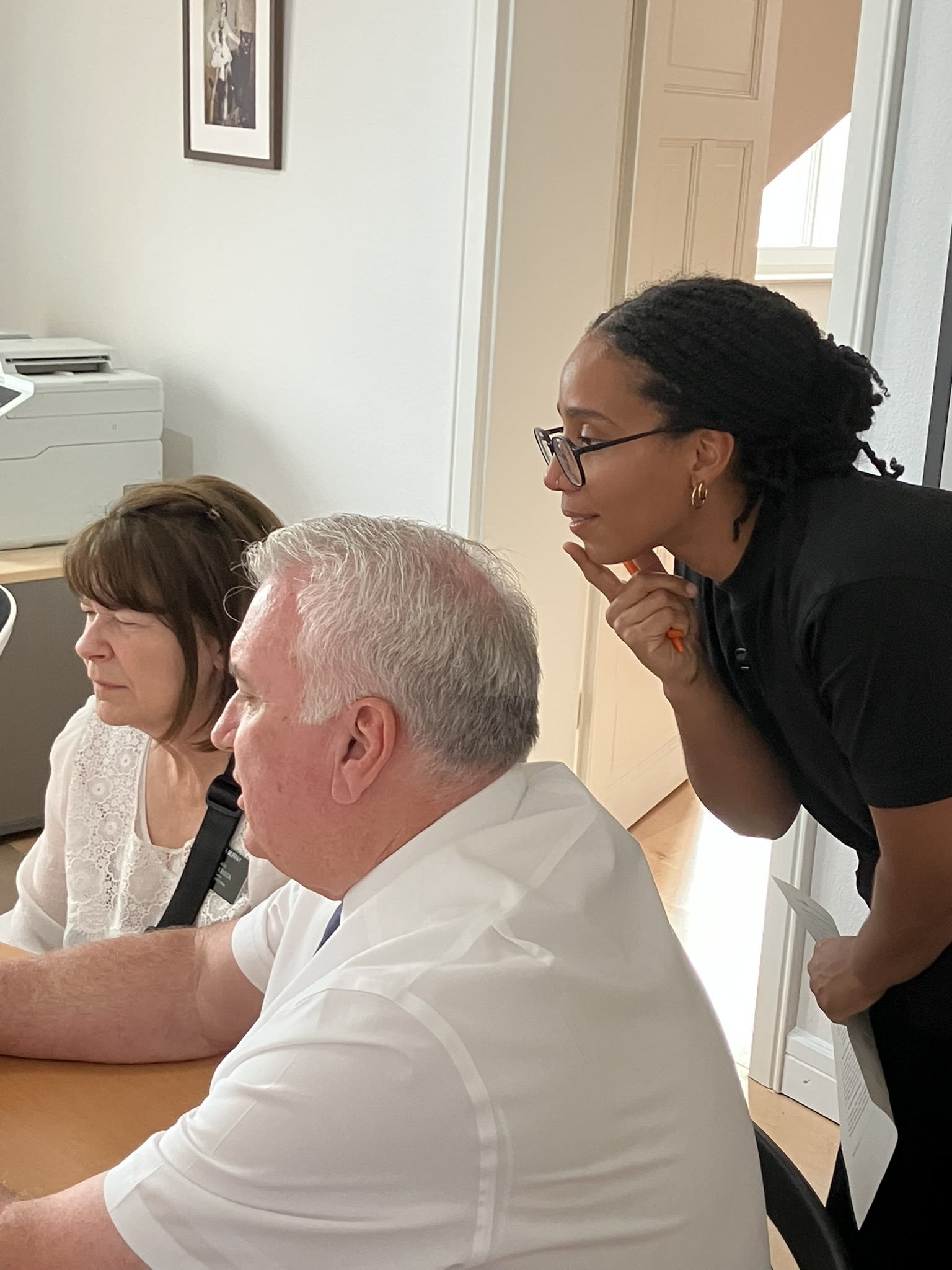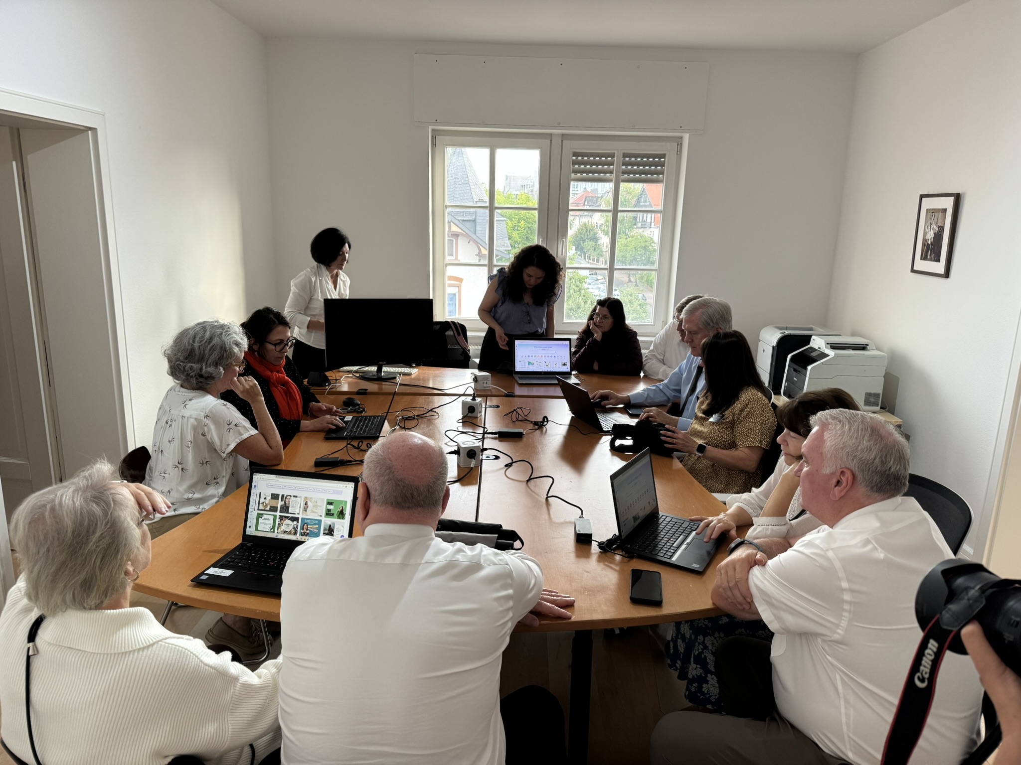 On another evening, we did a service project at one of our local projects. This is the immigrant women’s center that the church donated computers to. They had us come and create social media posts for an upcoming intercultural week in Frankfurt. They patiently taught us how to do so.