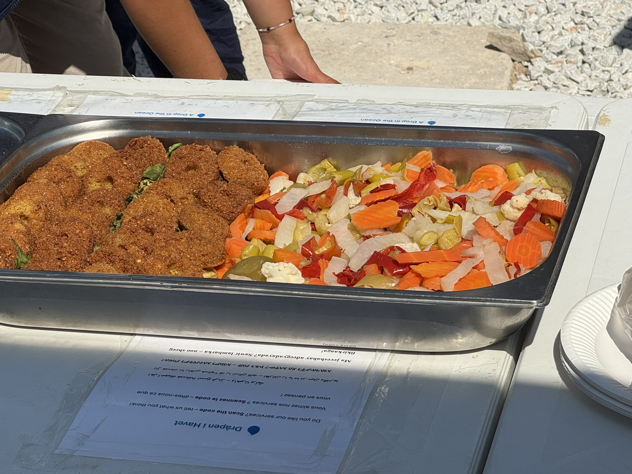 A Drop in the Ocean is an NGO with expertise in WASH (water, sanitation, and hygiene). In this camp, they monitor access to hot water and have organized the laundry system. Their team on the ground includes 3 employees, 2 interns and 5 international volunteers (young people 23 years and older who come for a few months at a time at their own expense to serve)