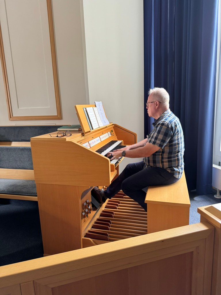 Elder Lamb practicing the organ