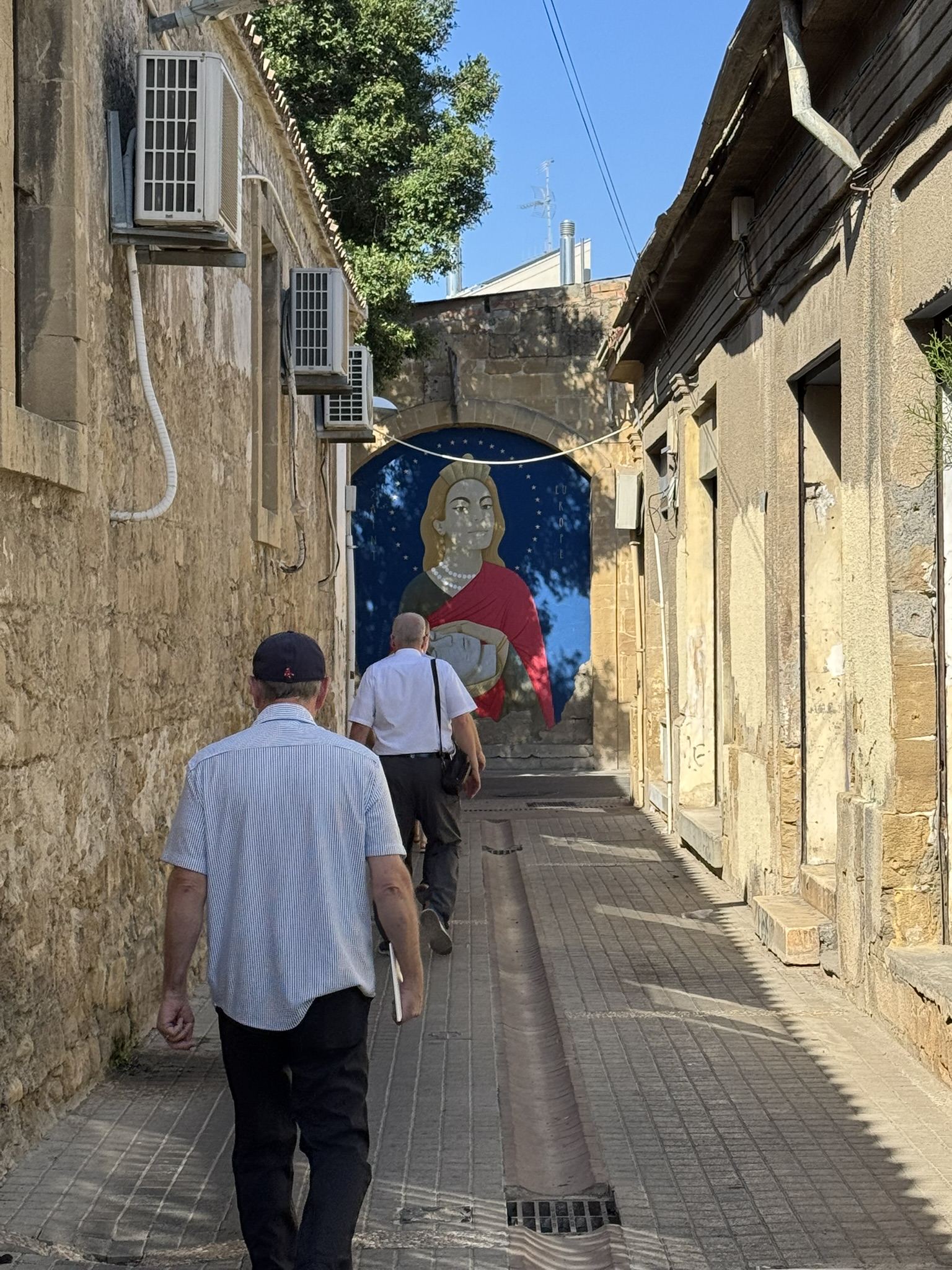We walked across the border from the Republic of Cyprus (primarily inhabited by Greek Cypriots to the Turkish Republic of Northern Cyprus. UN troops patrol this zone.