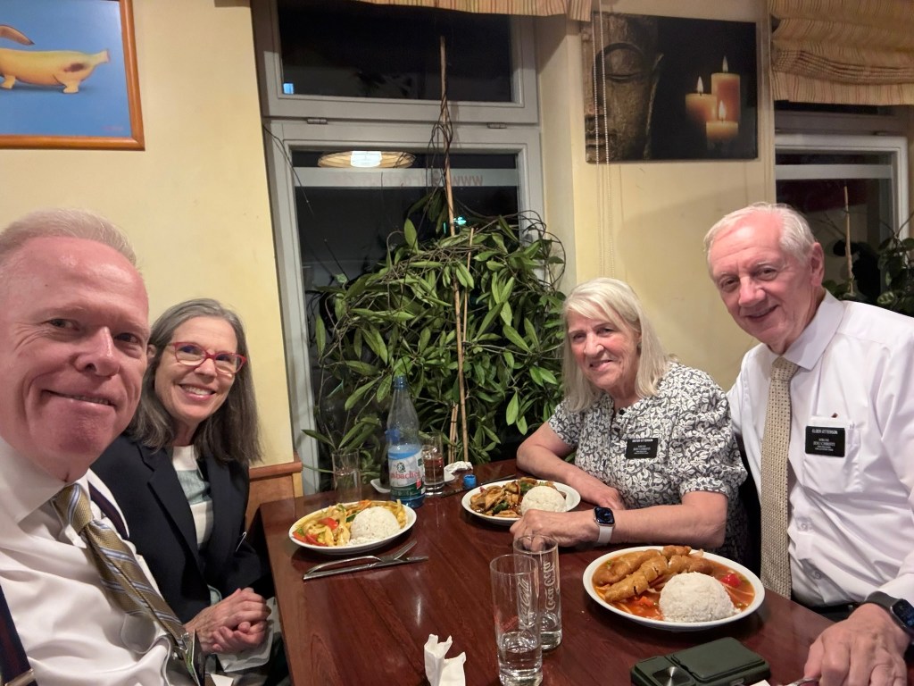 One of our new arrivals to the area office are Elder and Sister Otterson. They serve as communications directors for our humanitarian department. We enjoyed dinner after our midweek temple trip