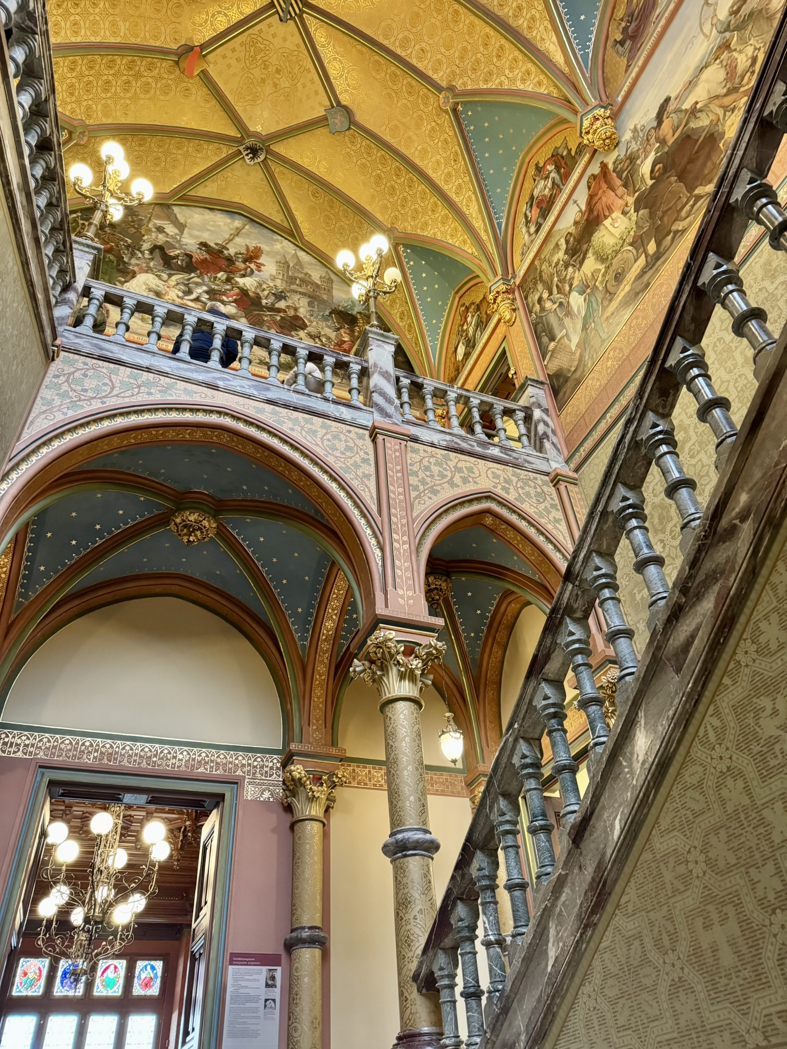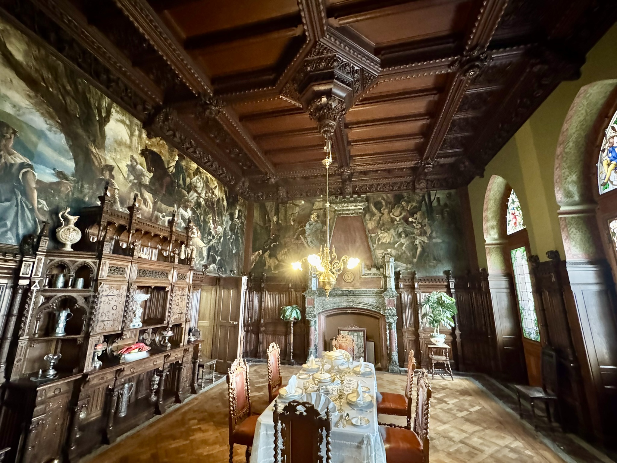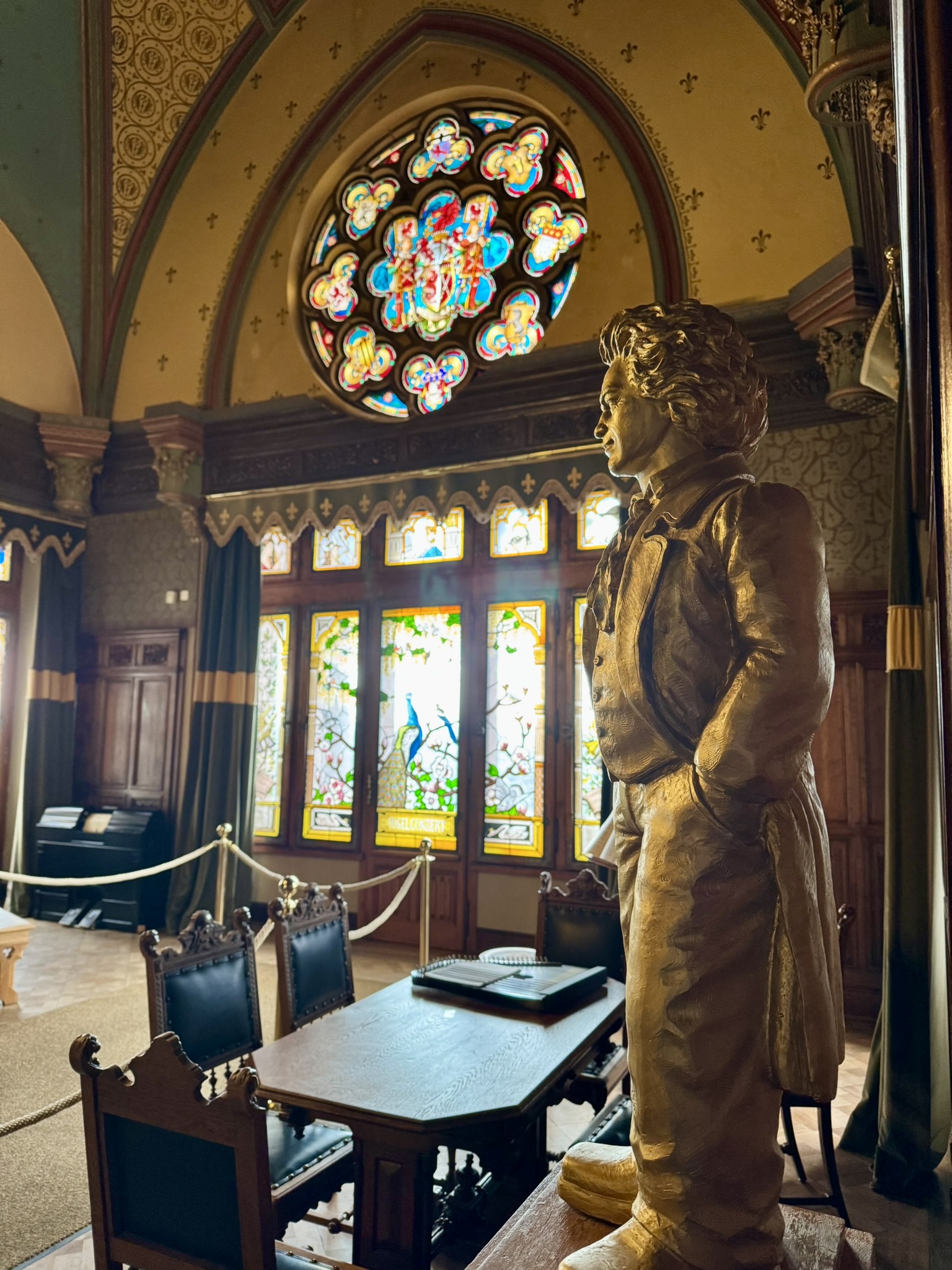 On Saturday we drove to Konigswinter to see Schloss Drachenburg. Commissioned by Baron Stephan von Sarter in 1884 as a private villa it has served as a home, a Catholic boarding school, an elitist Nazi training school and a training center for railway workers. The structure suffered heavy damage during WW2 and fell into a state of disrepair. The castle has been restored to its late 19th century style and now is a museum house. We enjoyed the beautiful interior and the stunning autumn colors outside.