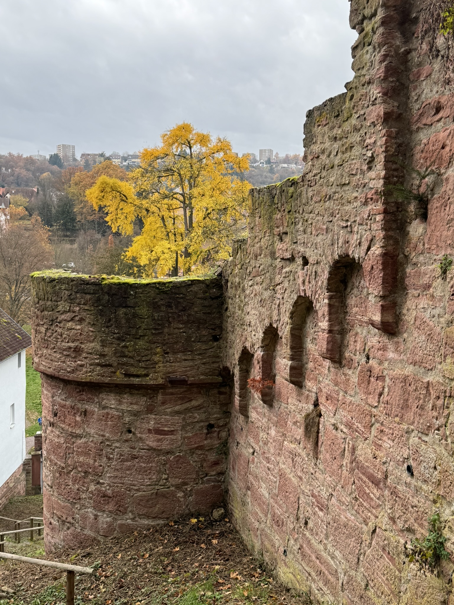 The Counts of Wertheim built a castle on the hill in the 12th century that is mostly ruins today. It was partly destroyed during the 30 Years War, not in battle but by a 9-year-old girl who fell asleep without extinguishing her candle. Fire and gunpowder are not a good mix.