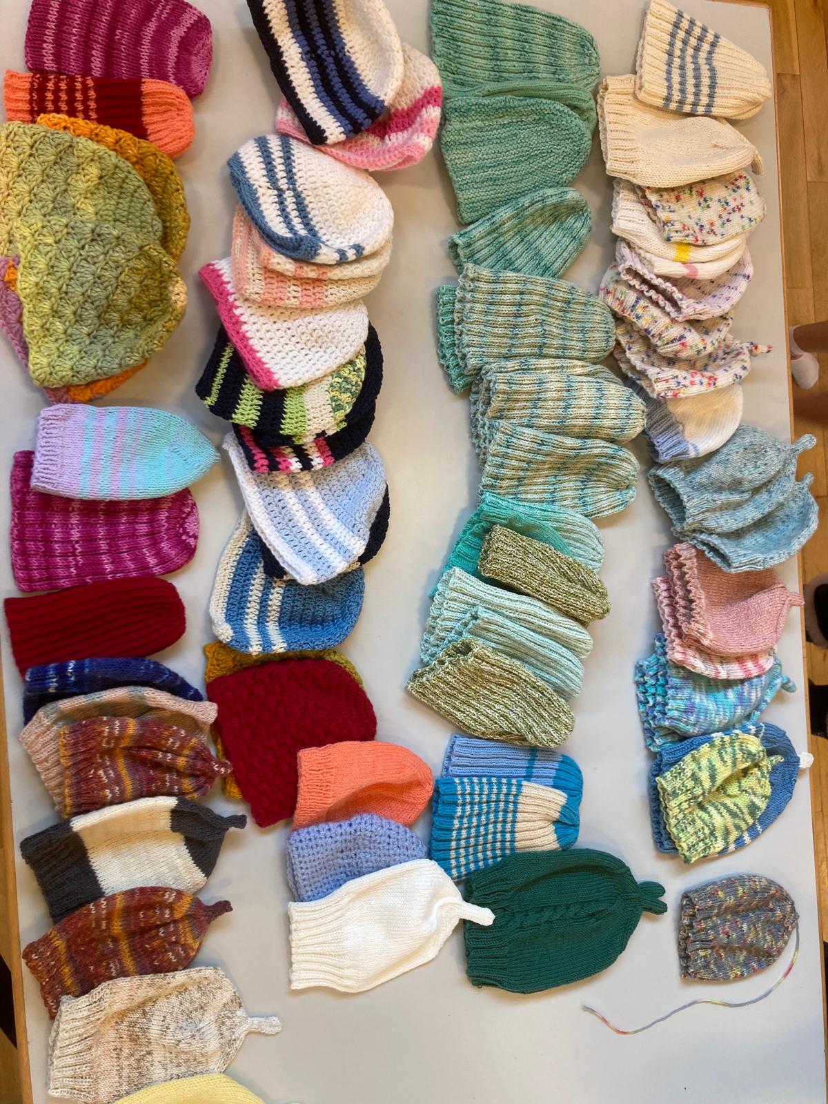 - Donation of 75 crocheted baby hats for vulnerable newborns. They will be distributed by local midwives.