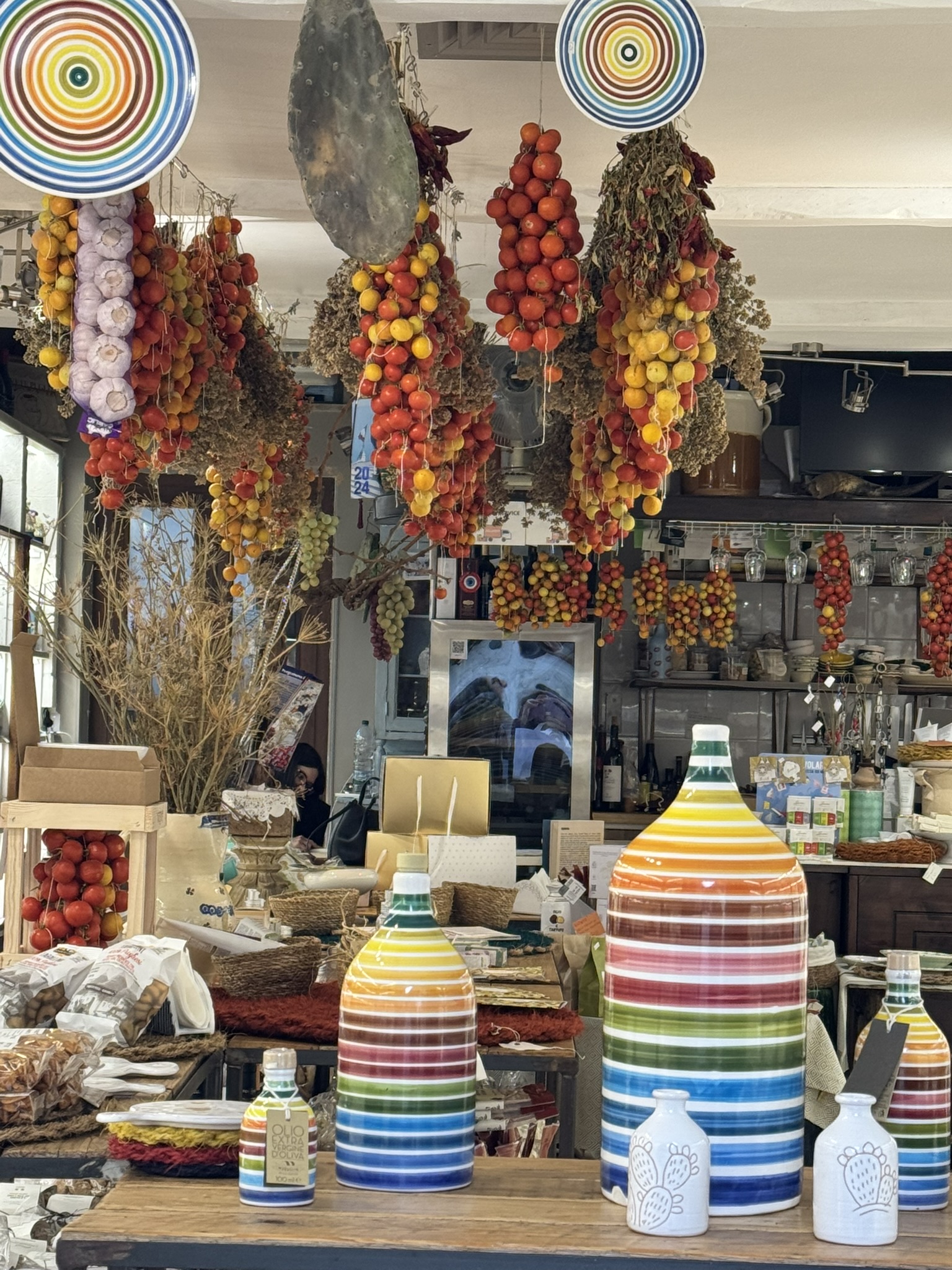 We kicked off the New Year by driving the Amalfi Coast. Tiny pointed regional tomatoes are beyond delicious. We sampled them on salads and in pasta sauce. We have seen them hanging in markets, shops, roadside stands, and homes. We are told they last for months.