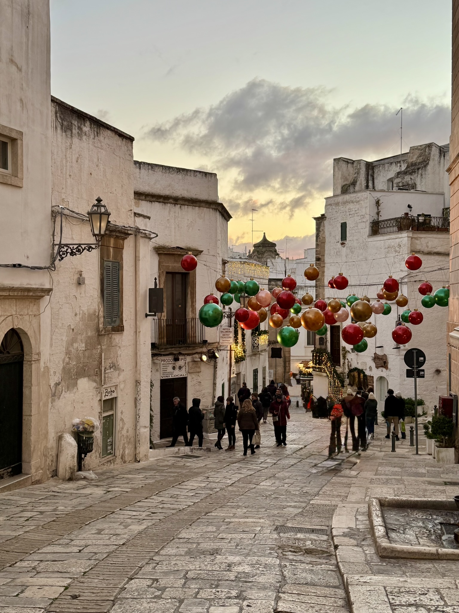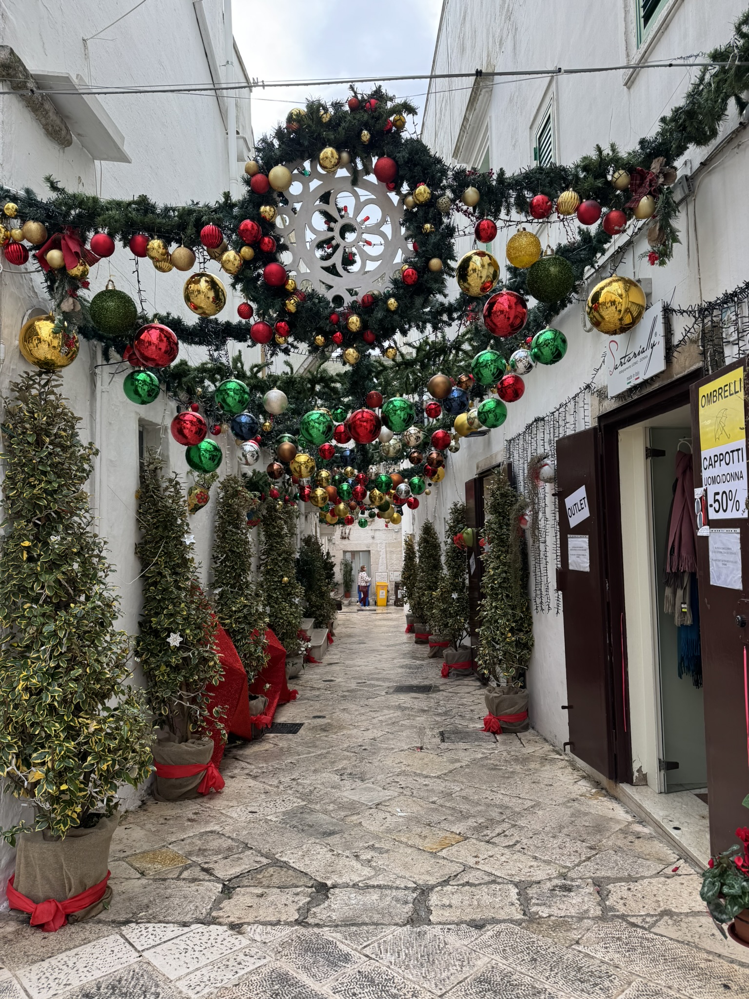 Locorotondo is one of the most ancient villages of Pulgia. It is known for its circular layout and offers stunning views of the Itria Valley. It was all decked out for Christmas.