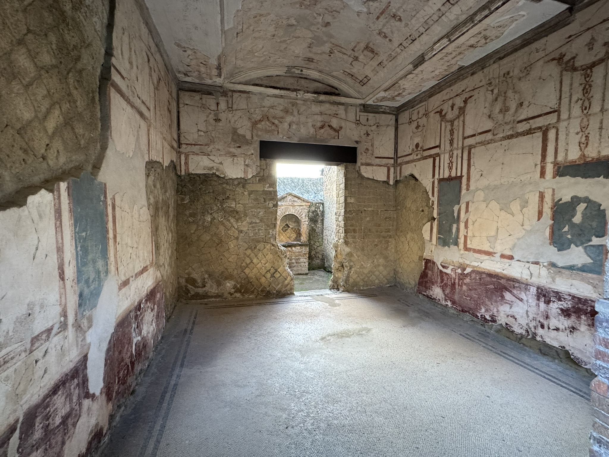 Herculaneum was a wealthy small Roman seaside town near Naples, famous as a luxurious retreat for the Roman elite. Destroyed and perfectly preserved by the same Vesuvius volcanic eruption, here wood, furniture, and organic matter were carbonized in comparison to Pompeii’s lighter ash cover leaving remarkably intact buildings, frescoes, mosaics, and even papyri.