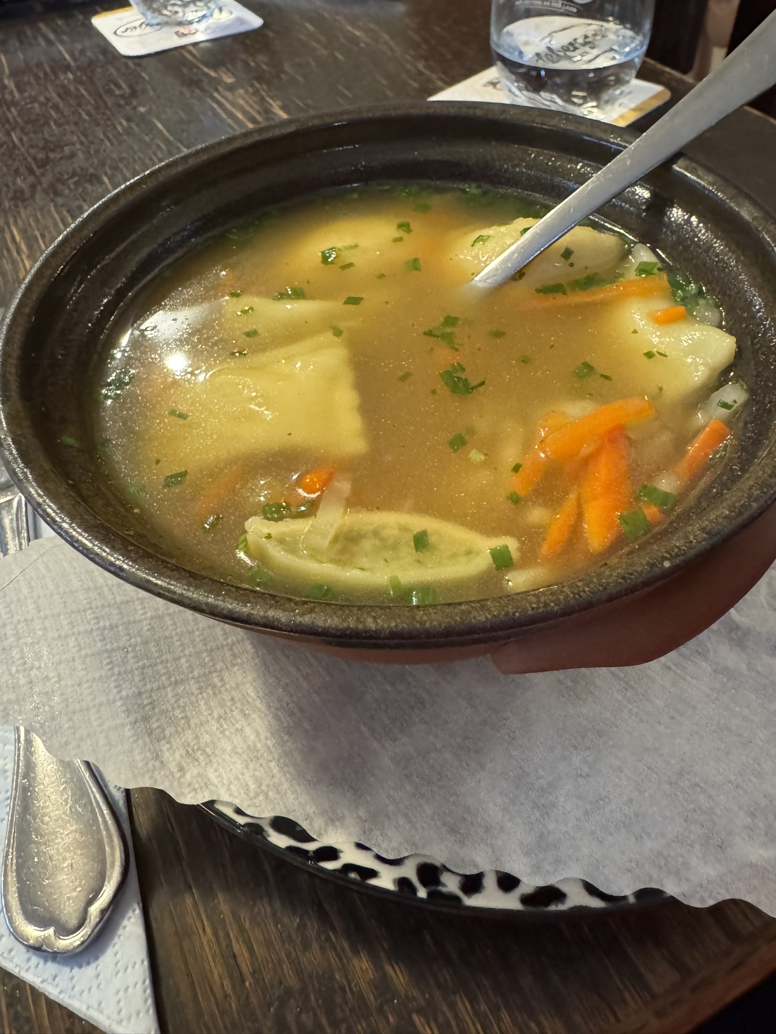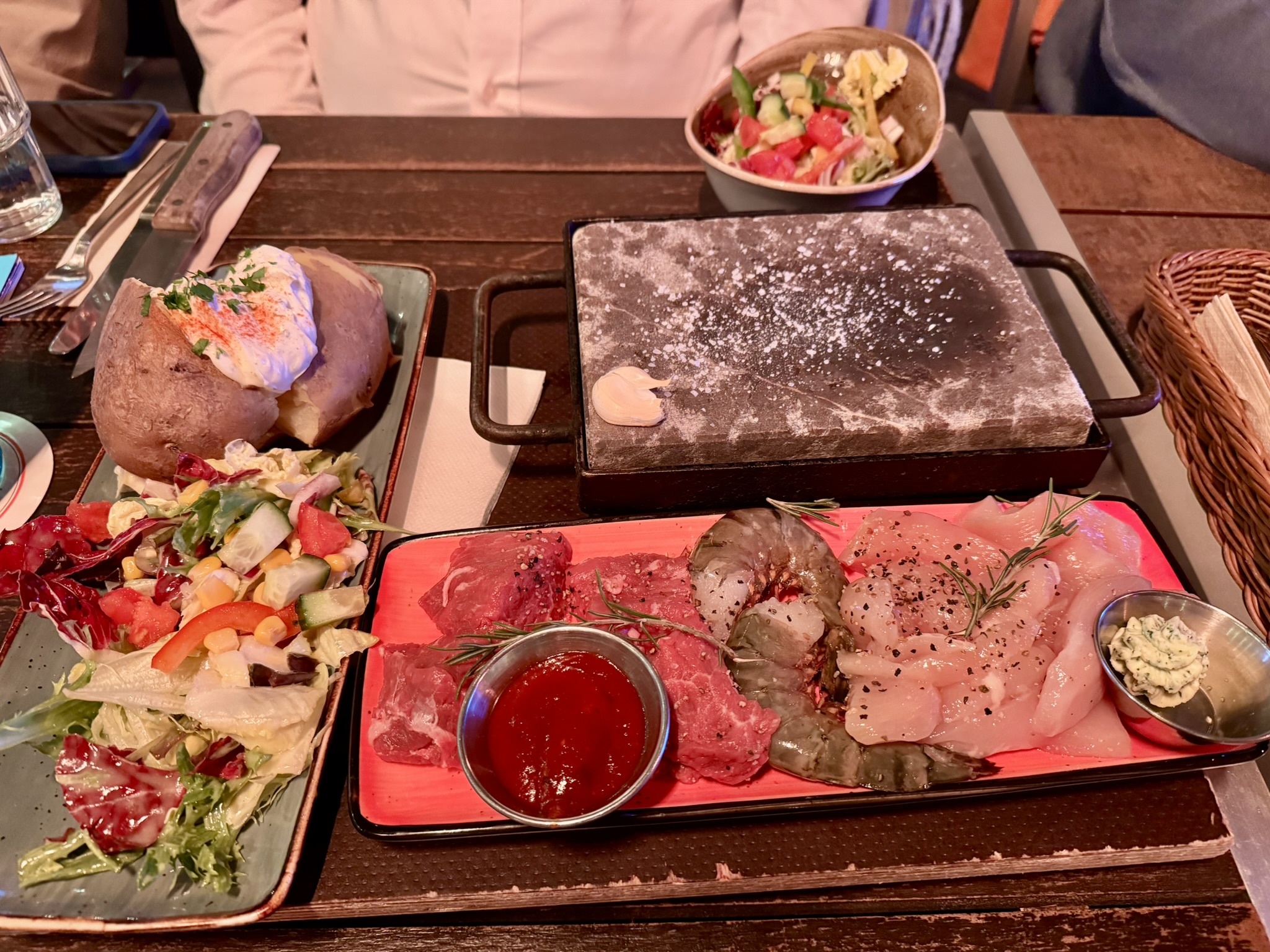 We had a unique dining experience at Eschenheimer Turm. This 15th century tower was a city gate, part of the late-medieval fortifications of Frankfurt am Main. It now houses a restaurant. We cooked our own meal on hot stones.