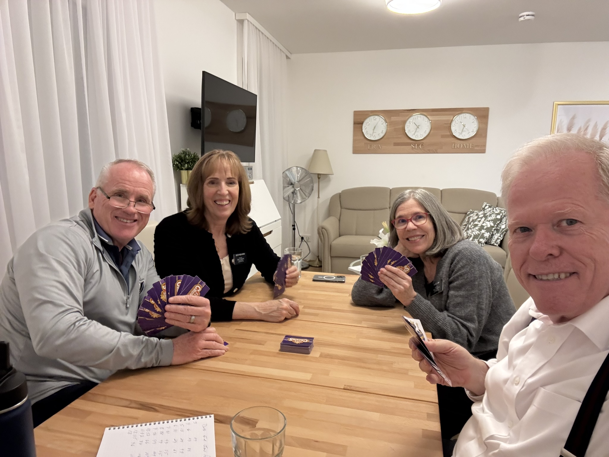 We love our dear in-field Austria/Switzerland couple turned area mentoring specialists who now live with us in Bad Homburg. We shared one last trip to the temple, dinner, and one last game of Five Crowns.